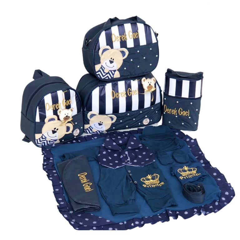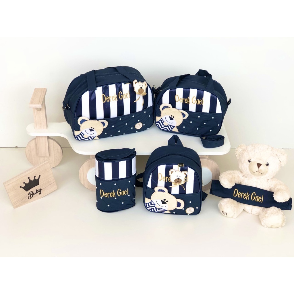 Kit Bolsa Maternidade Personalizada Urso Saída Maternidade 5 Peças