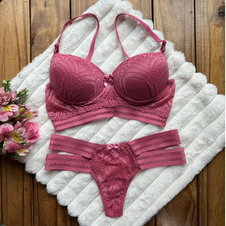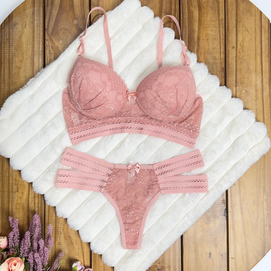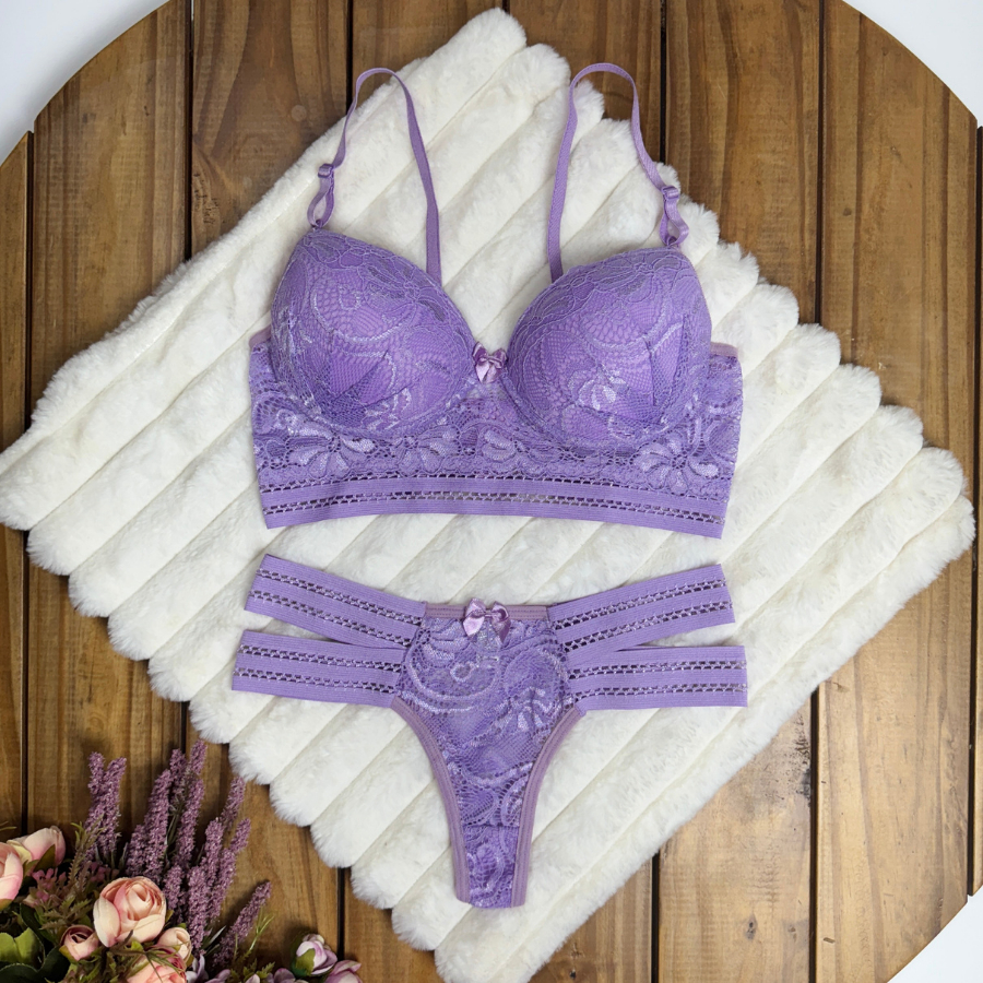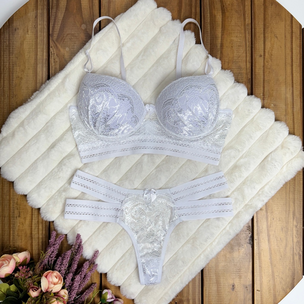 Conjunto Diva 2 Tiras Laterais Sutiã Com Calcinha Super Conforto Lingerie Roupa Cropedd
