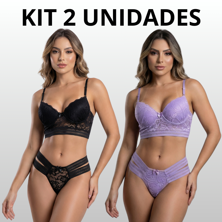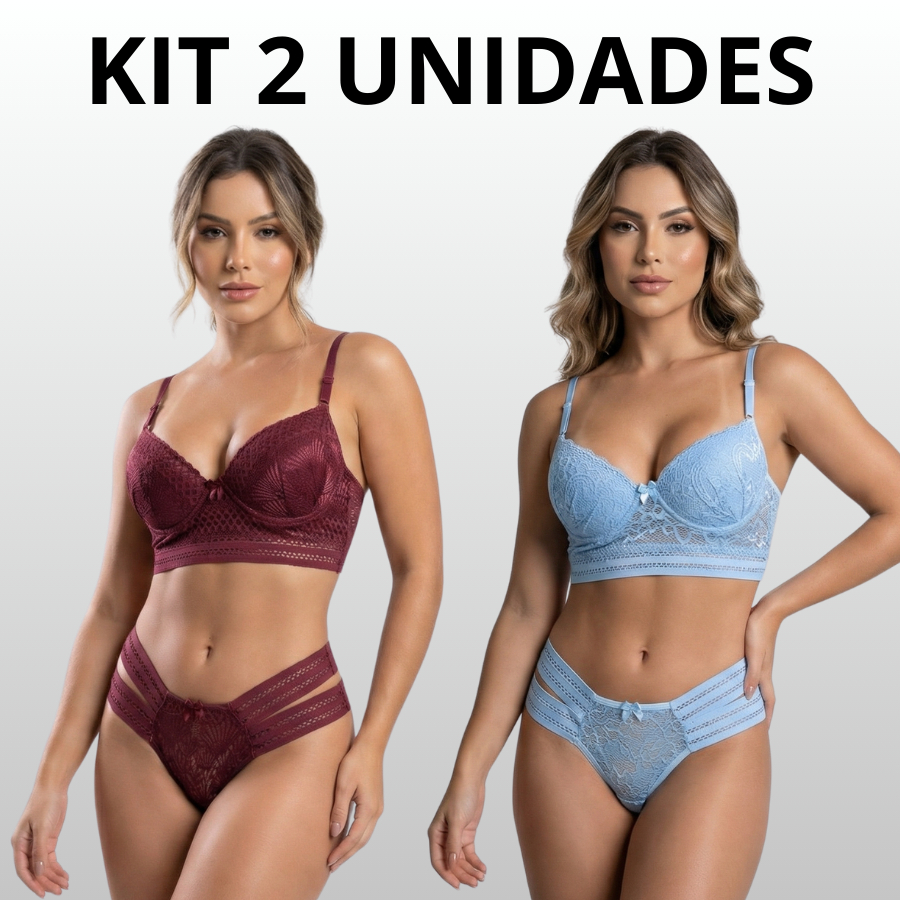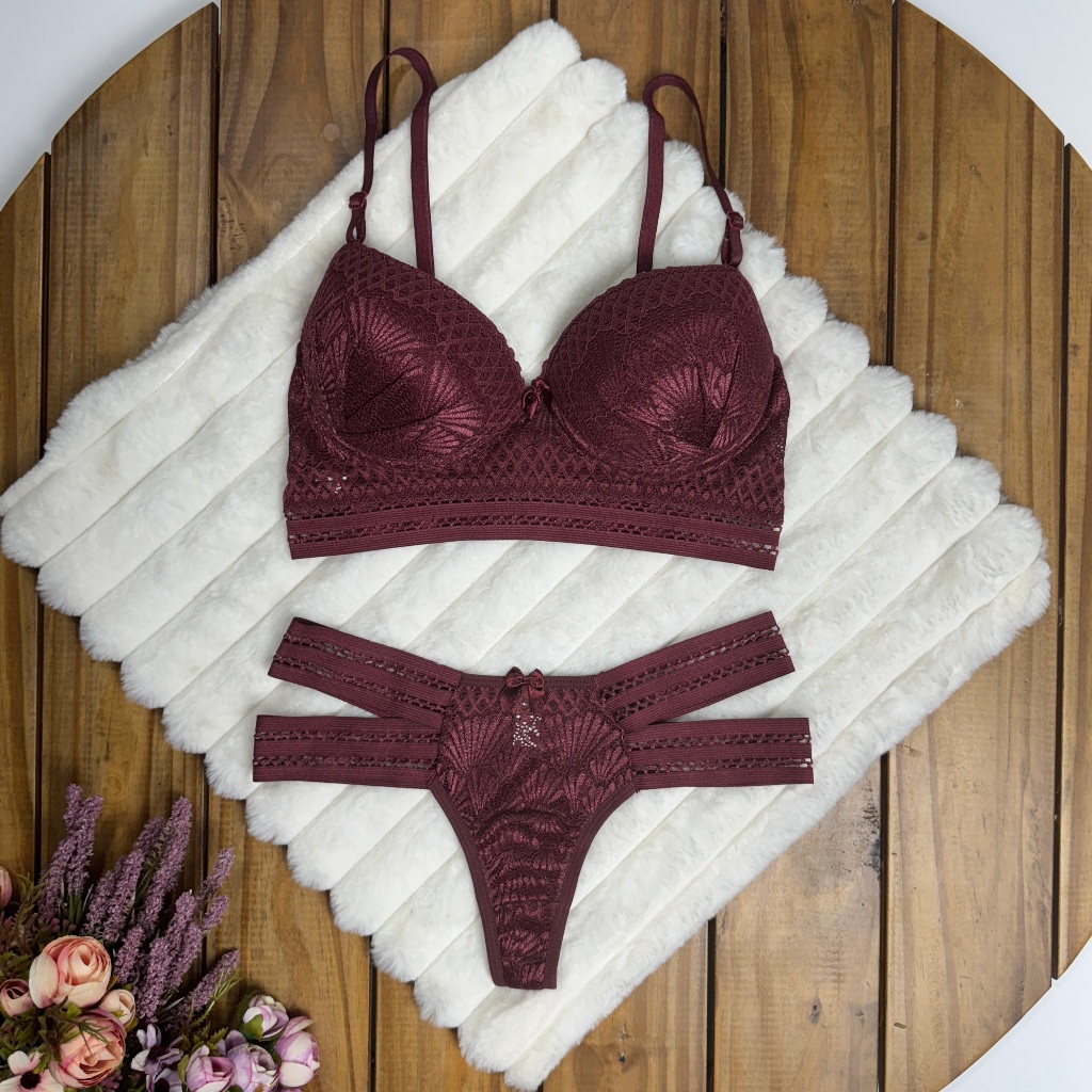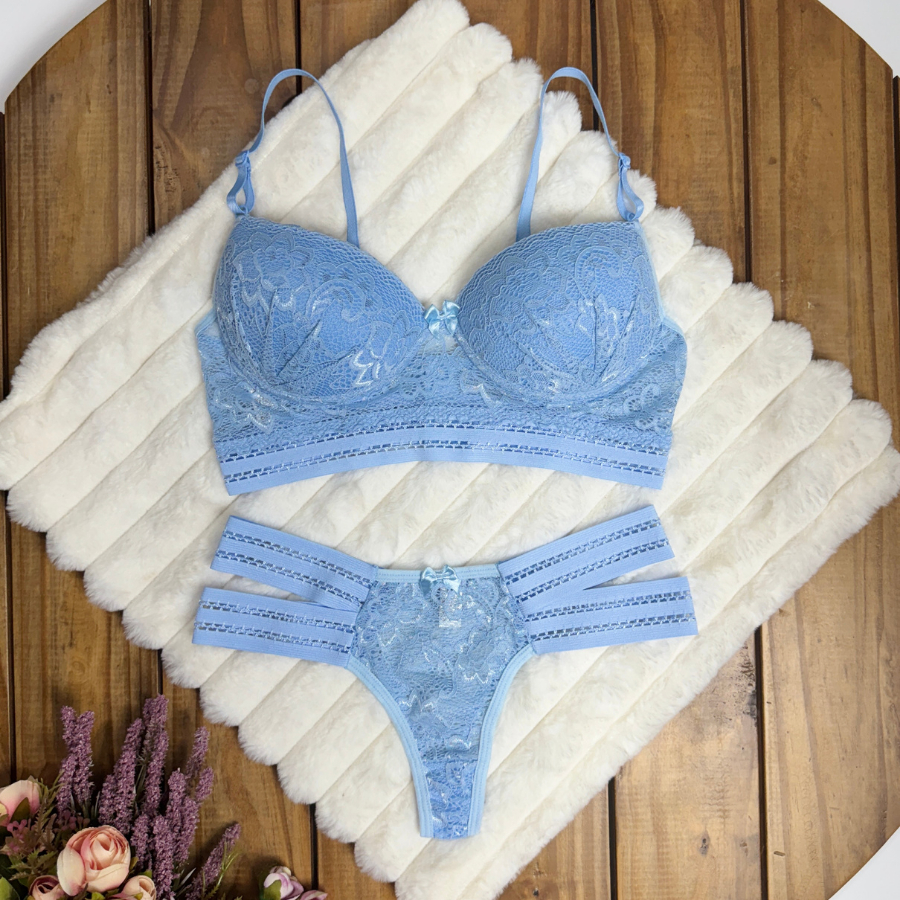 Conjunto Diva 2 Tiras Laterais Sutiã Com Calcinha Super Conforto Lingerie Roupa Cropedd