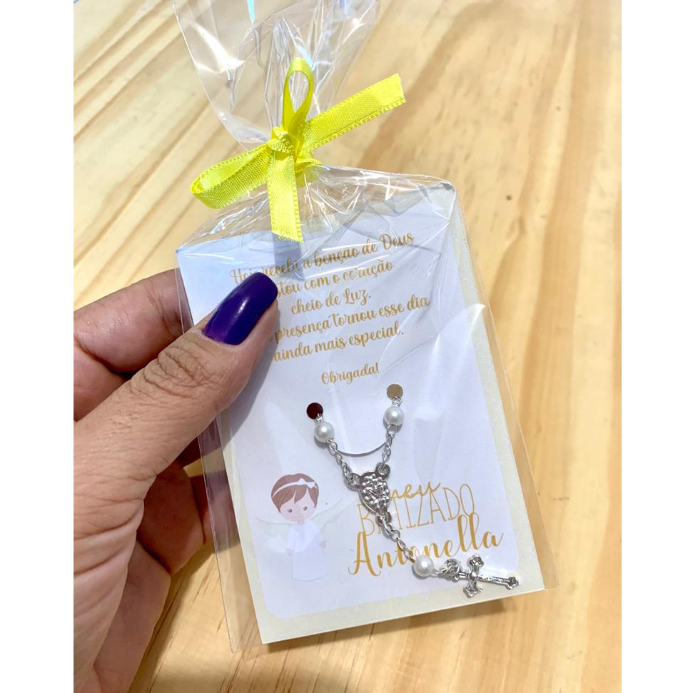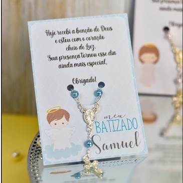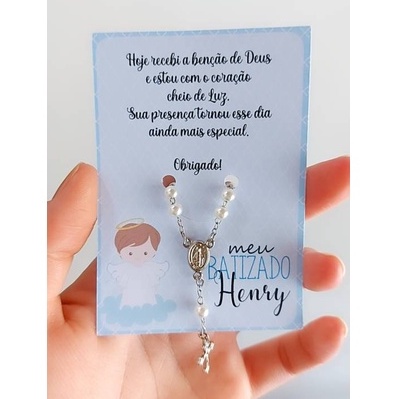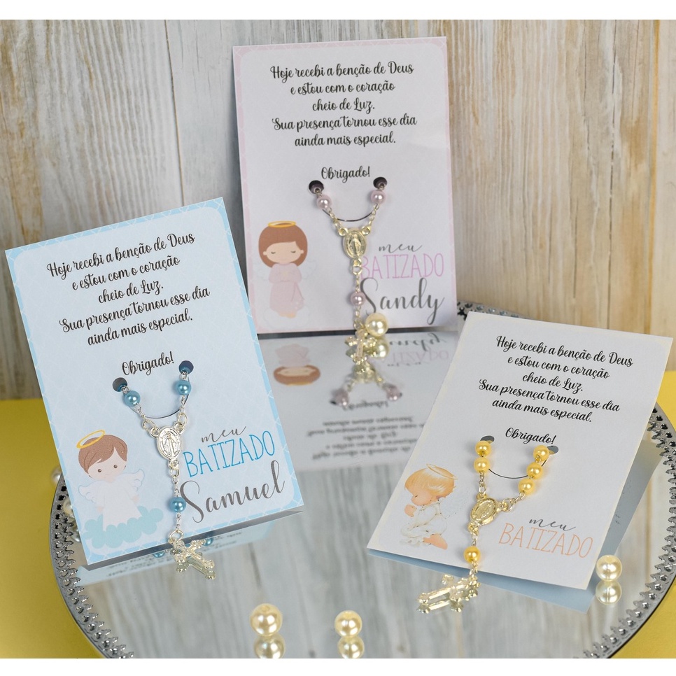 10 Cartões COM MINI TERÇO Lembrancinha de Batizado Eucaristia Comunhão - Envio Imediato