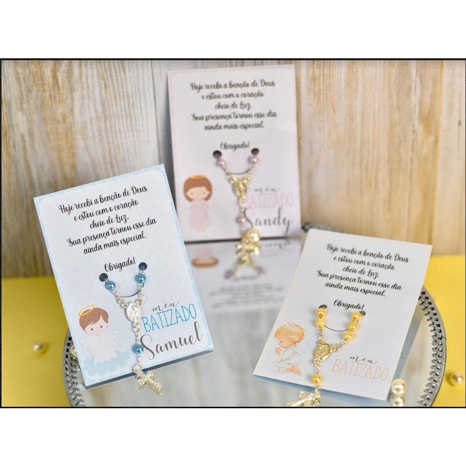 40 Unid Cartões Lembrancinha de Batizado Crisma Eucaristia para Mini Terço Batismo