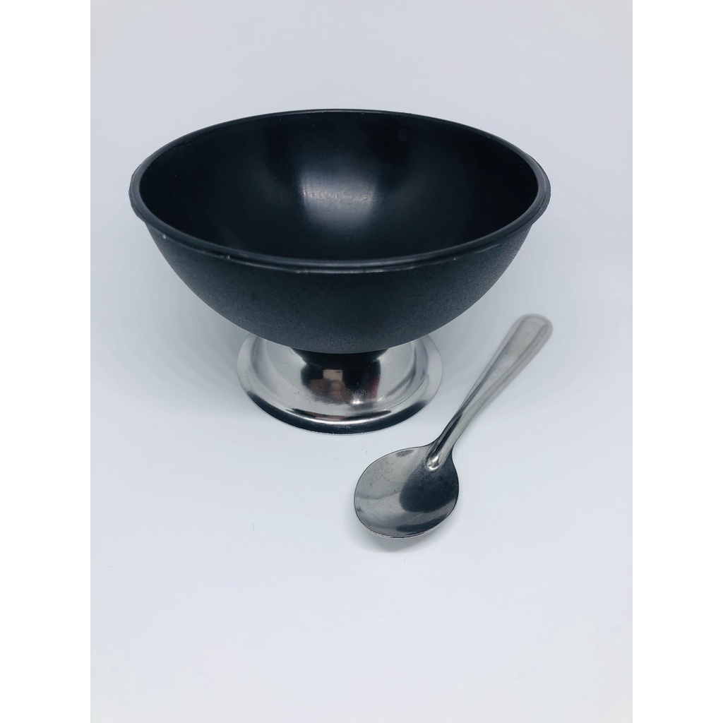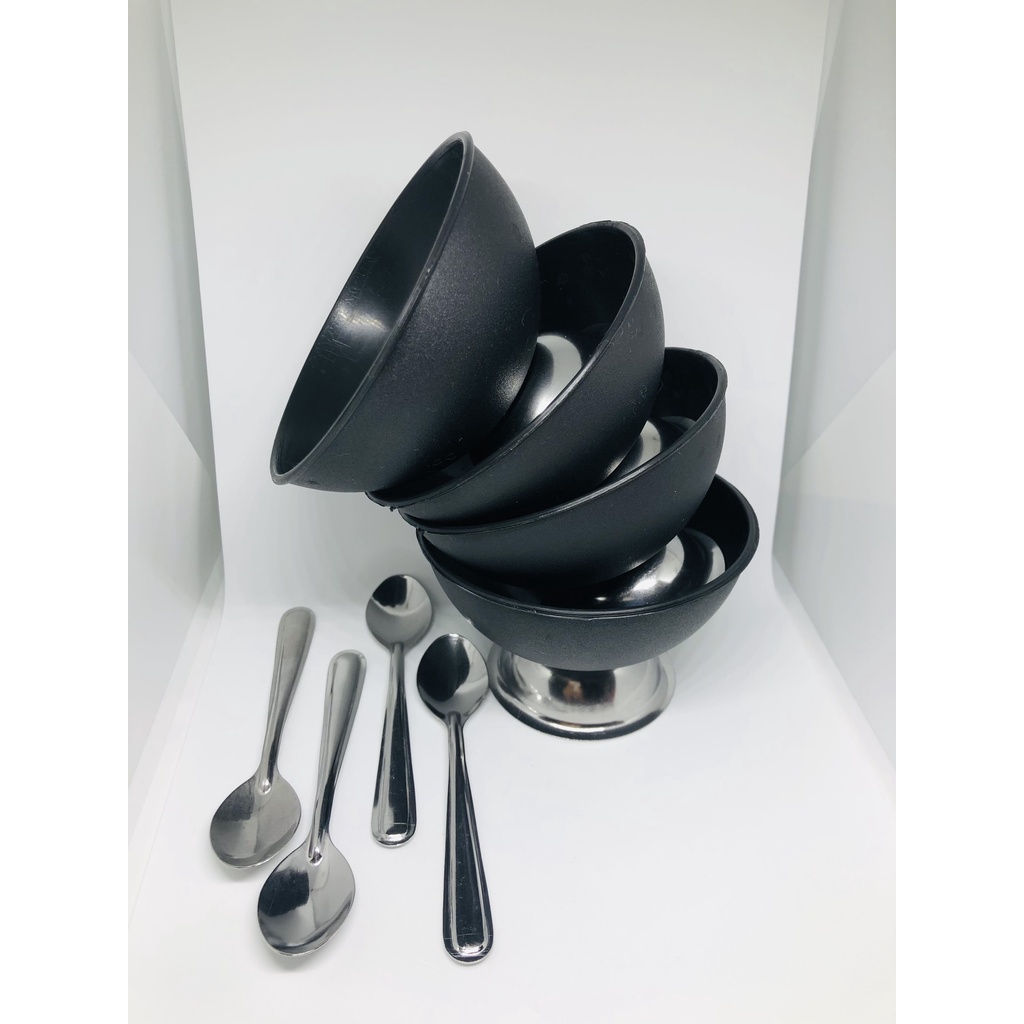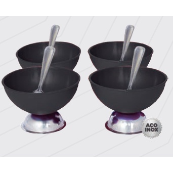 Jogo de Sobremesa Taça de Plástico e Inox - 8 Peças PRETO