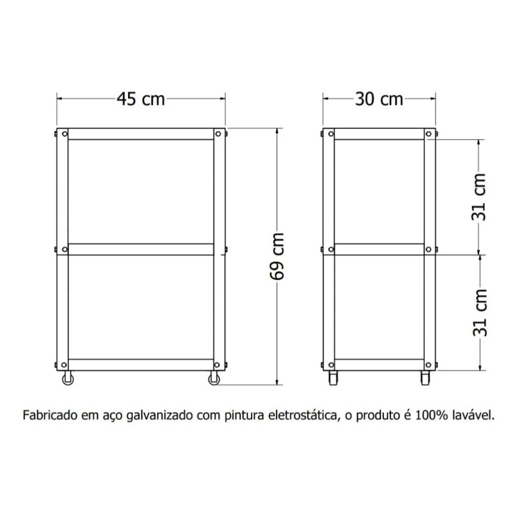 Carrinho Auxiliar em Aço Suporte De Esmalte Estético Com Rodinhas