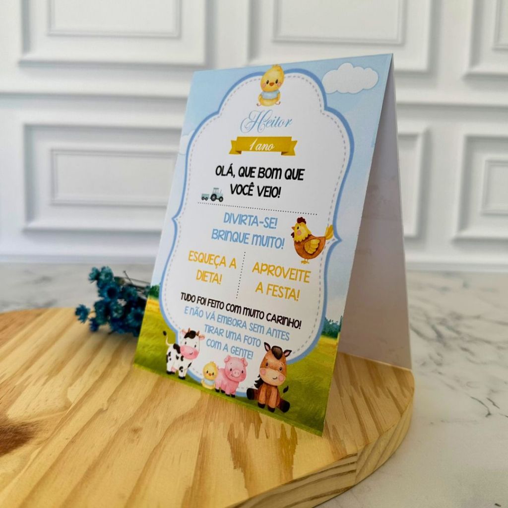 Plaquinha de Mesa Aniversário Fazendinha Azul Fazendinha Menino