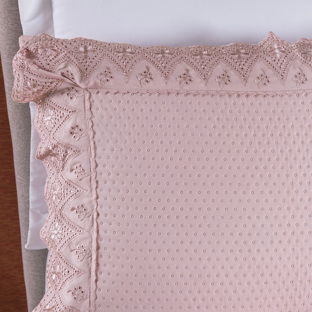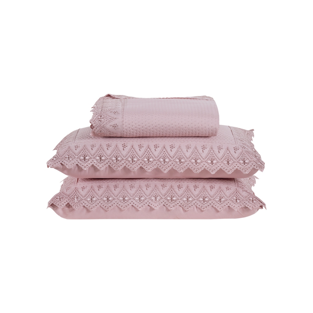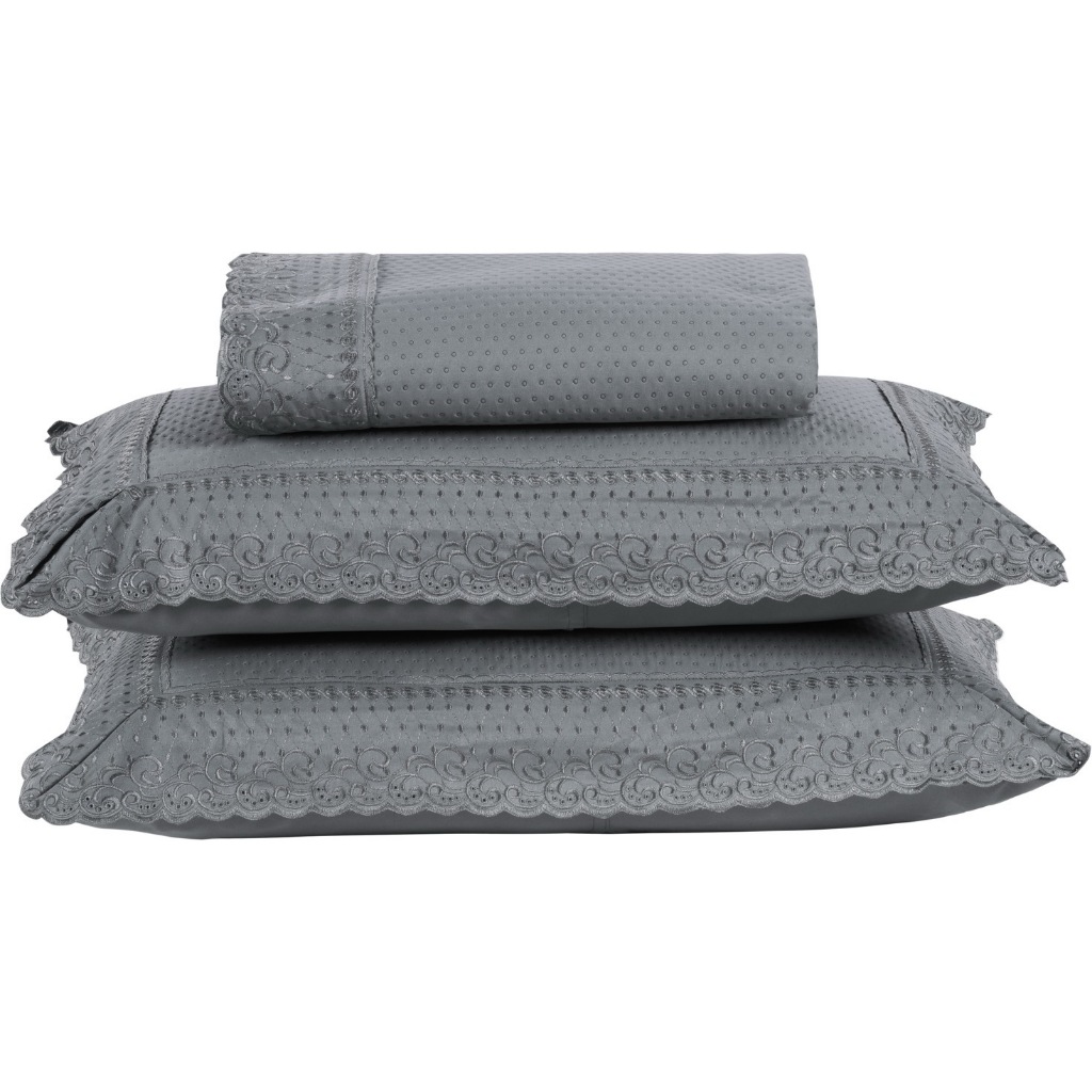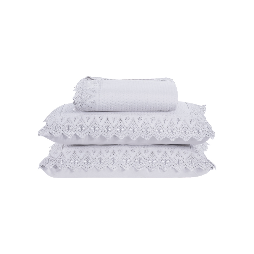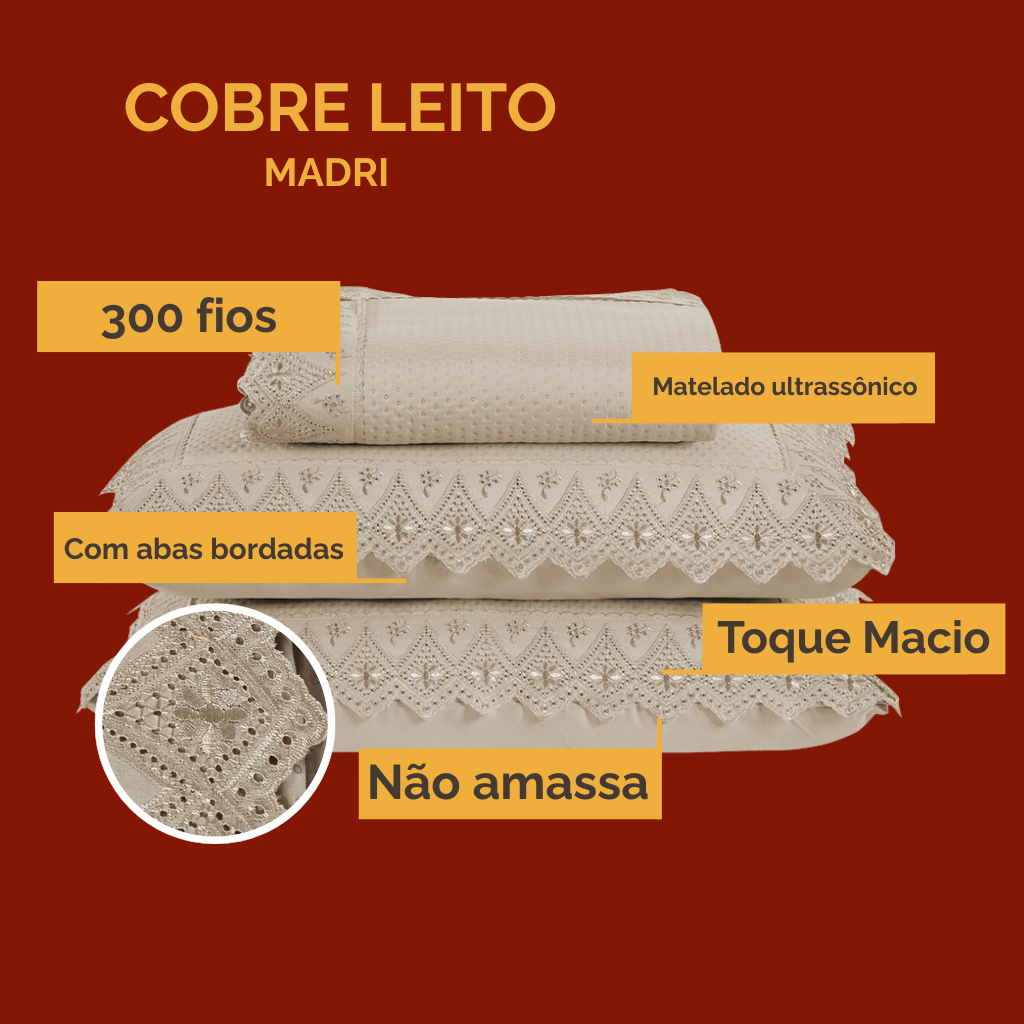 Kit Colcha Cobre Leito Cama Queen 3 peas percal 300 Fios com Bordado MADRI