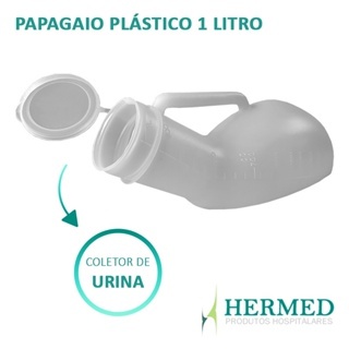 Coletor de Urina 1000ml Papagaio Hospitalar Com Tampa P/Emergência Incontinência Urinaria Acamados Masculino