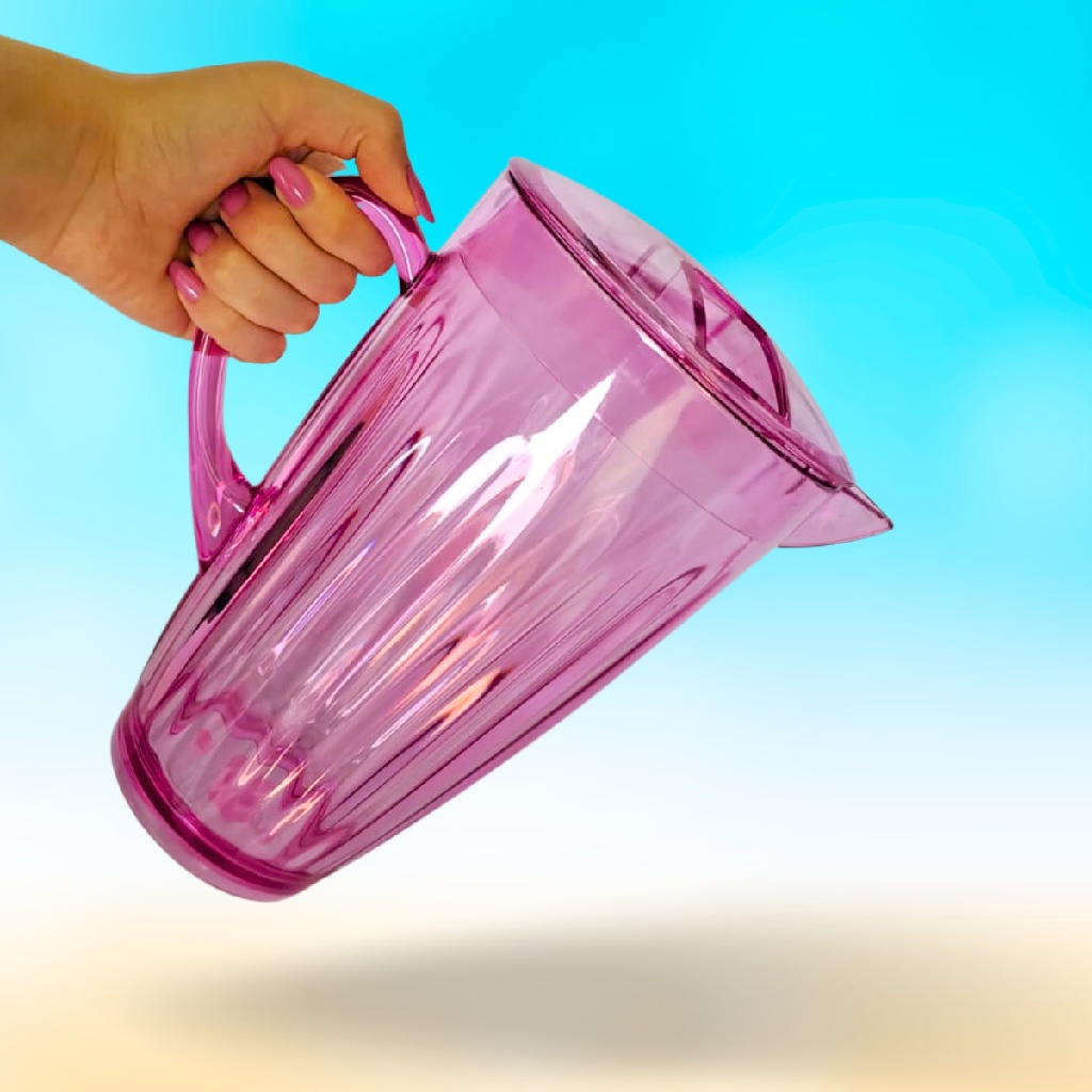 Jarra De Suco Água Refresco Em Acrílico Com Tampa Rosa 2 Litros