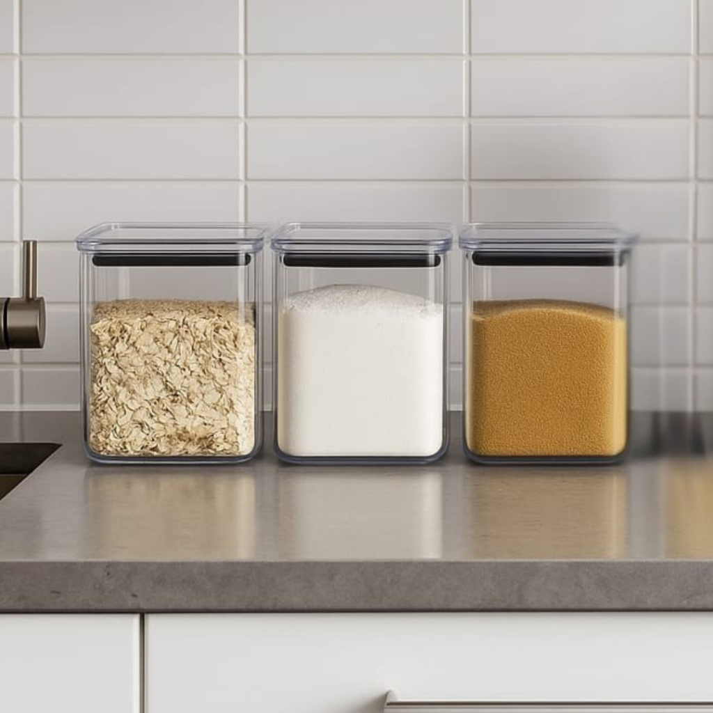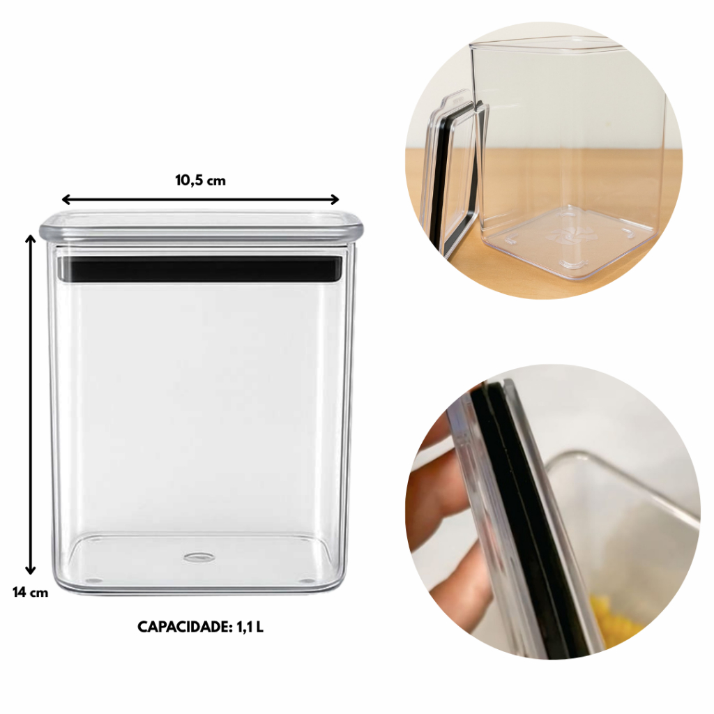 Kit 03 Potes Herméticos Tamanho Médio 1,1 Litros Acrílico