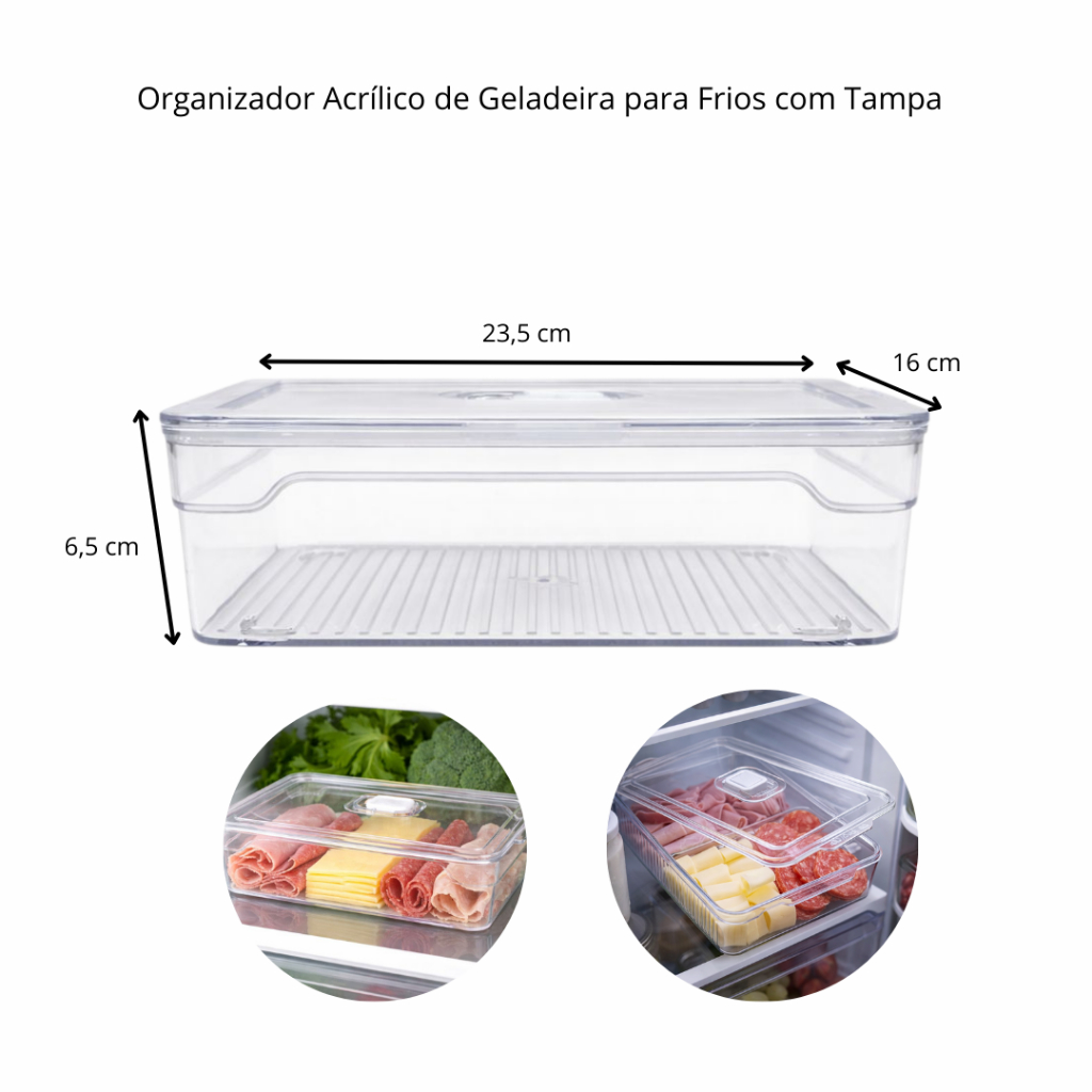 Organizador Acrílico de Geladeira para Frios com Tampa