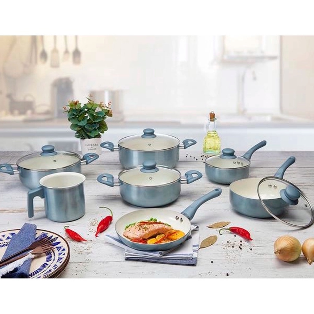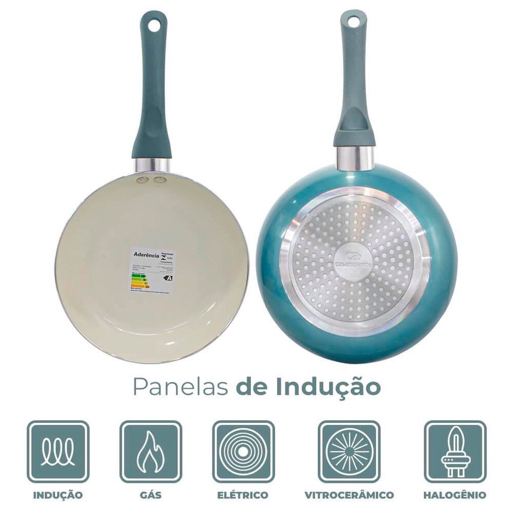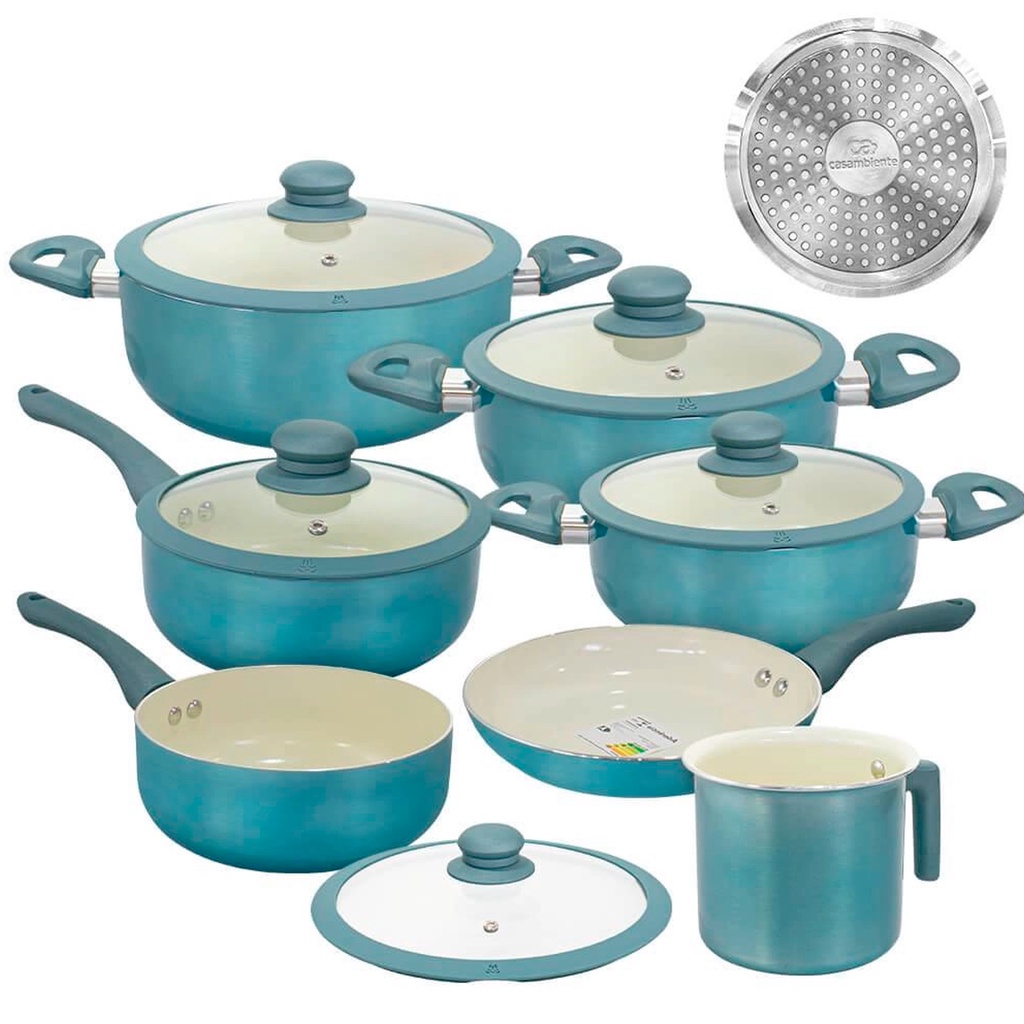 Jogo de Panelas Genebra 7 Peças Cerâmica Azul com indução
