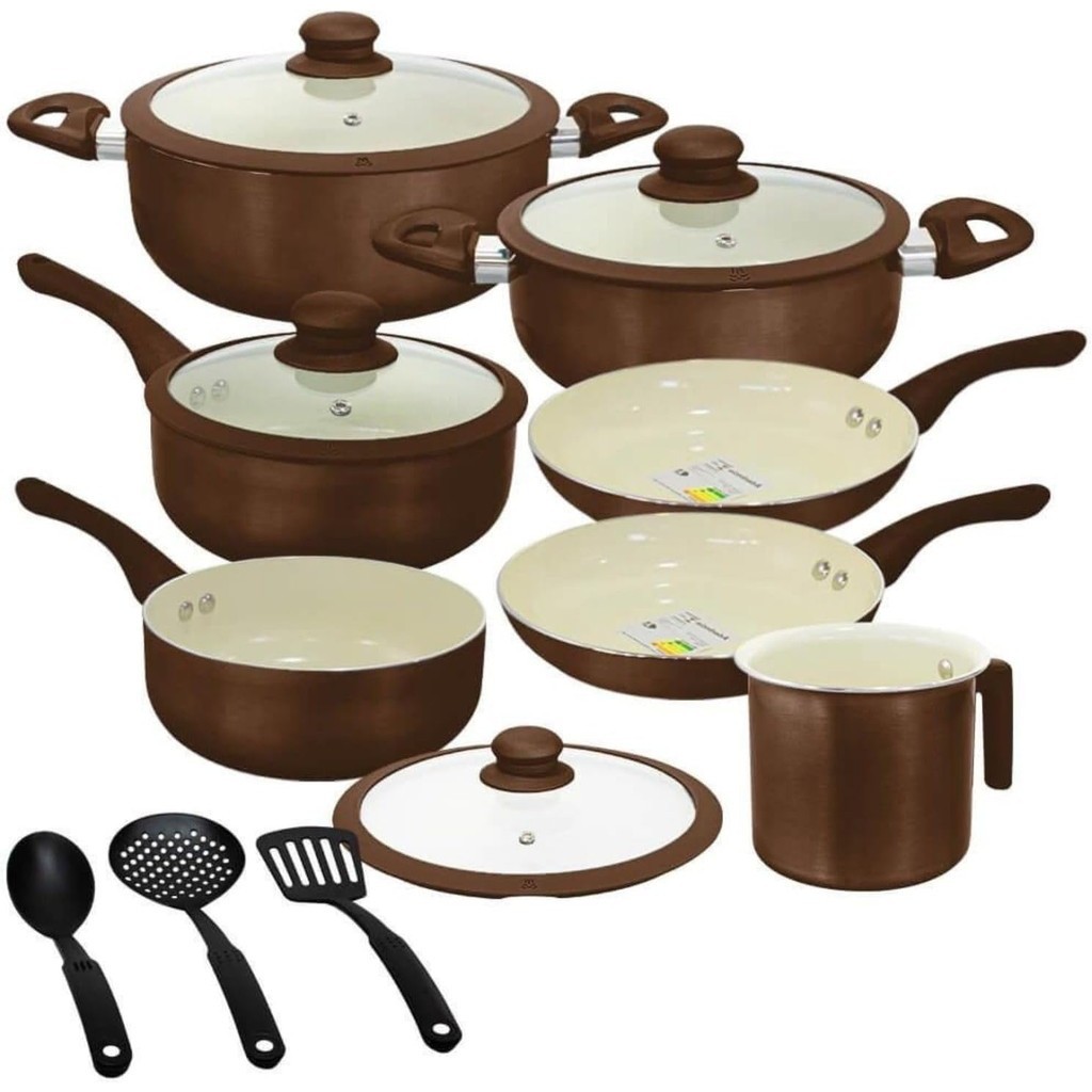 Jogo De Panelas Indução Antiaderente Cerâmica 10 Peças Roma