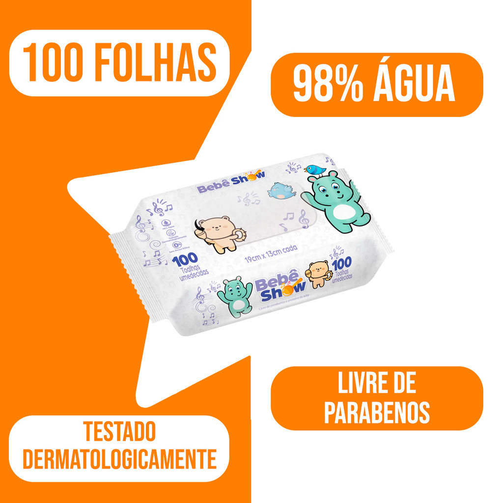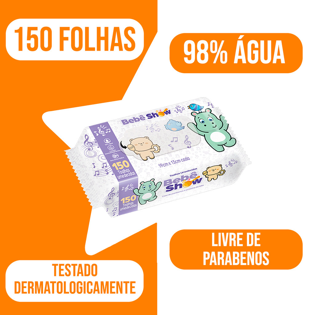 Toalha Umedecida Sem Álcool e Parabenos 150 Unidades