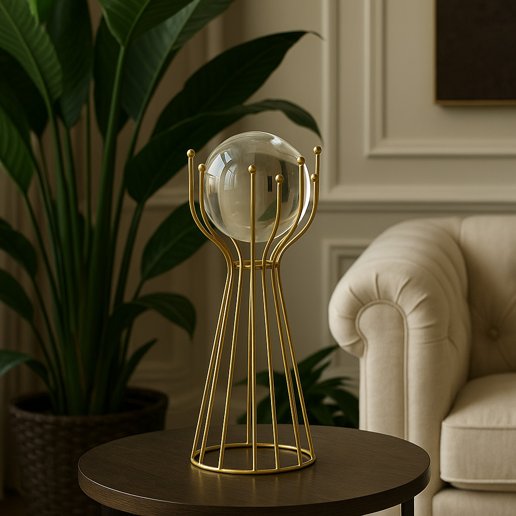 Decoração de Globo de Vidro com Base de Ferro 12x12x28 cm