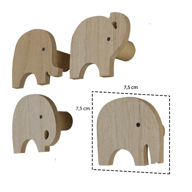 3 Ganchos Cabides Elefante De Madeira Para Parede