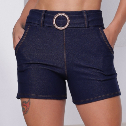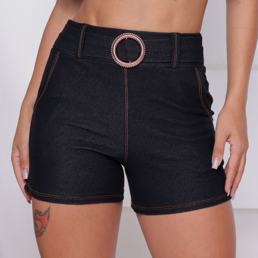 Shorts Jeans Feminino Curto Cinto Fivela Bolso Elastano bermuda M ao Extra