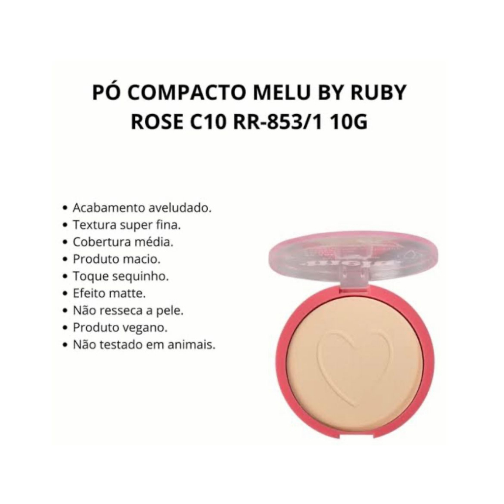 Pó Facial Compacto Acabamento Aveludado Cobertura Média Textura Fina - Melu By Ruby Rose
