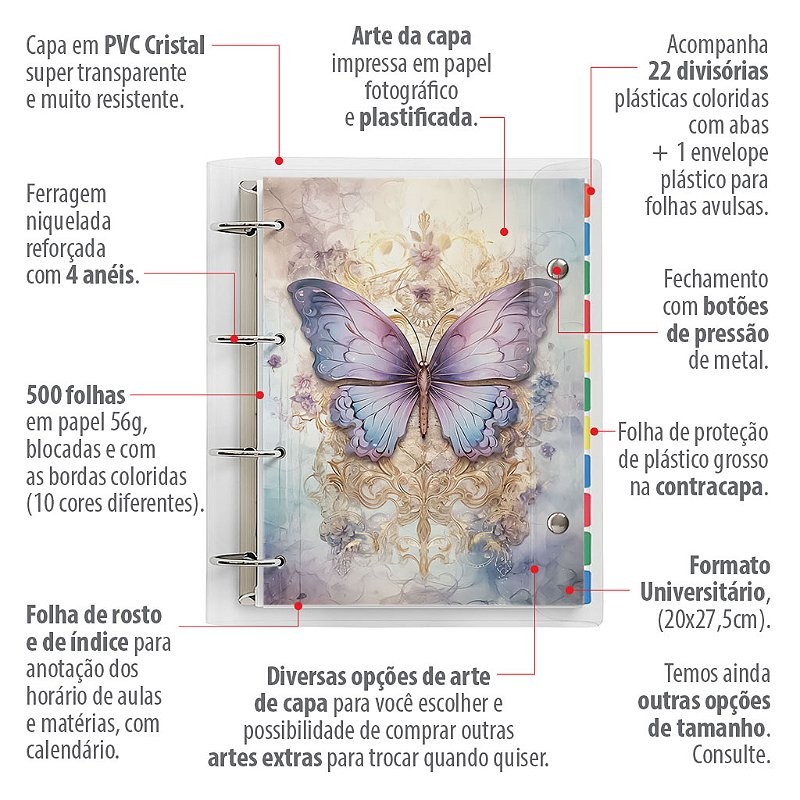 Big Fichário Universitário 500 folhas + divisórias Sonhos Blueberry