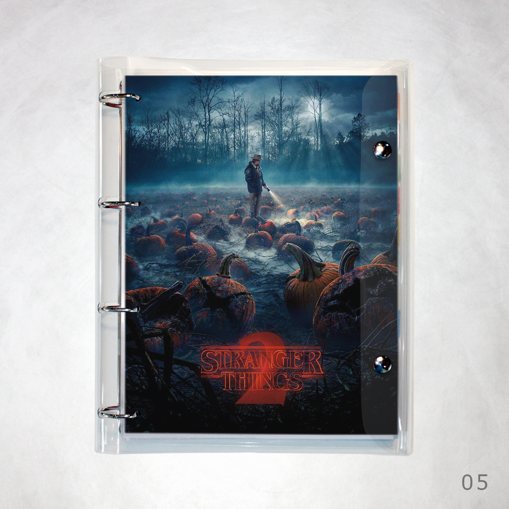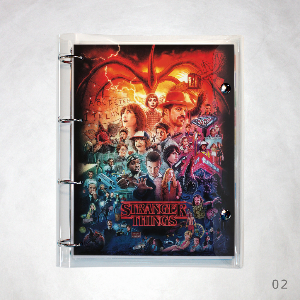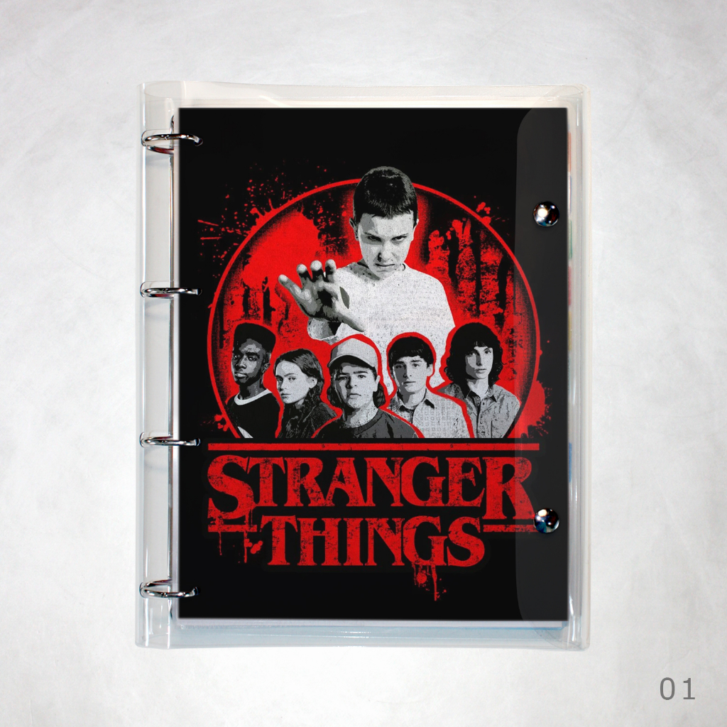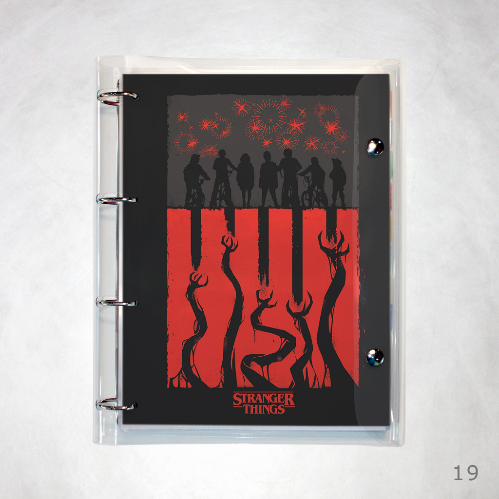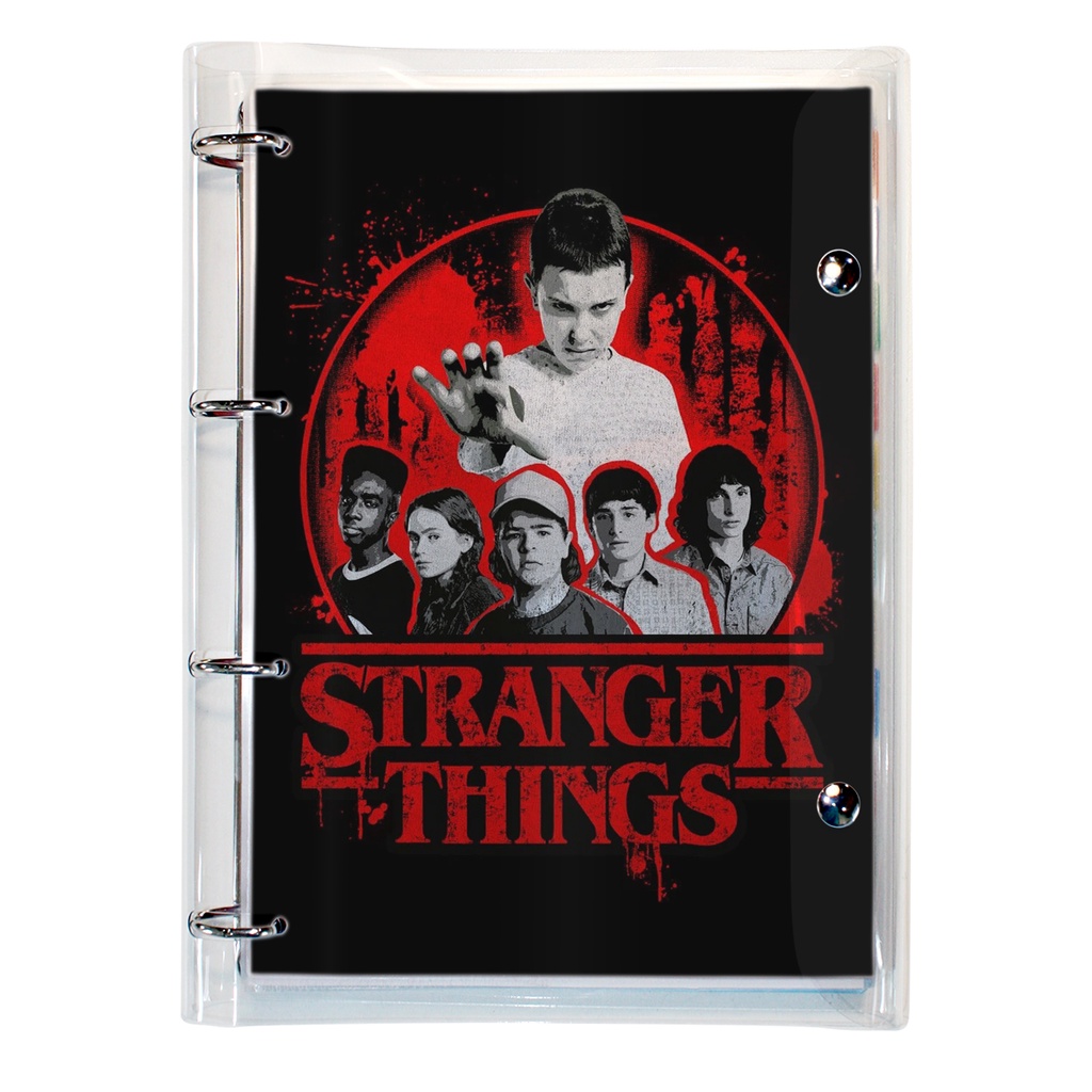 Caderno Argolado Fichário Stranger Things universitário cristal transparente 250 folhas + divisórias