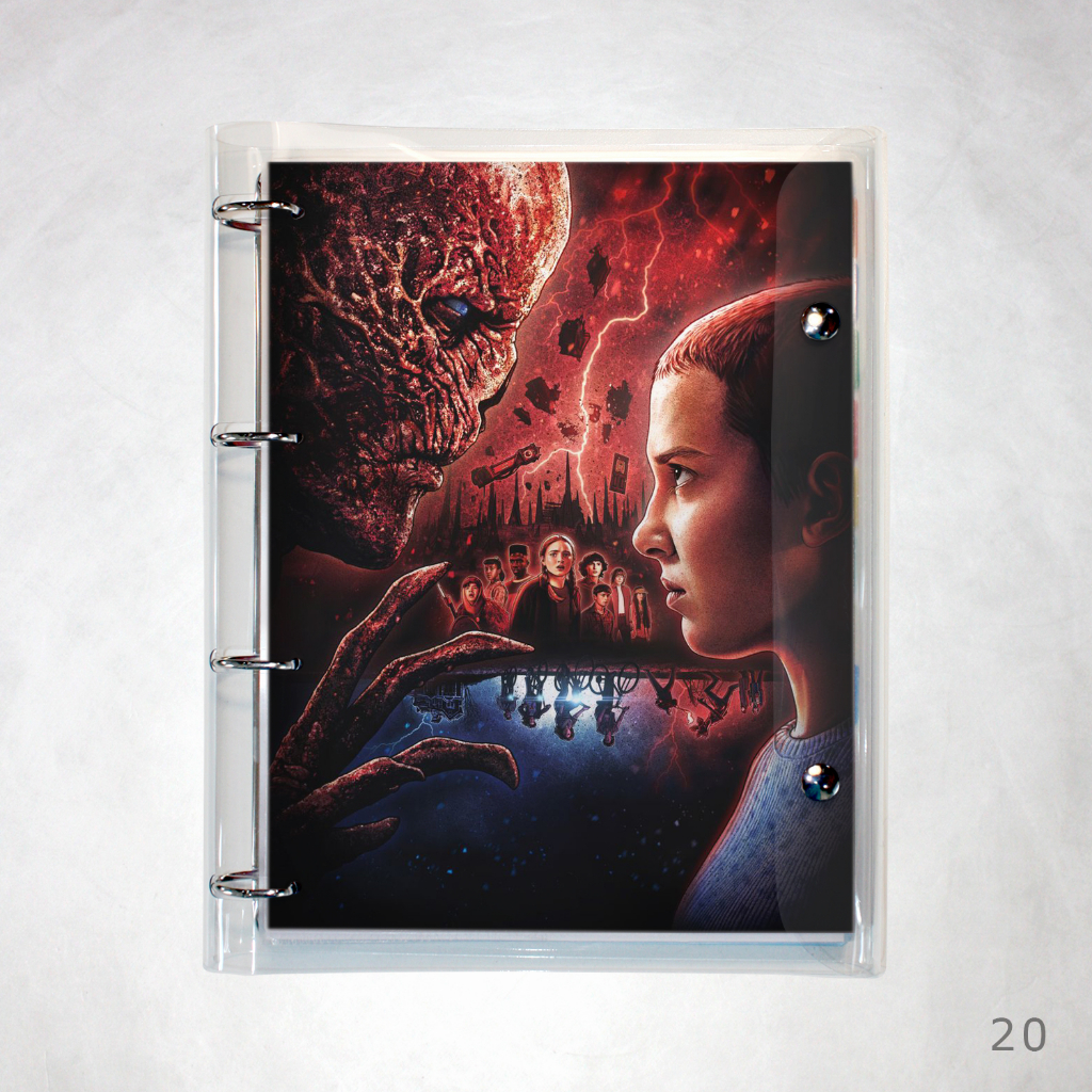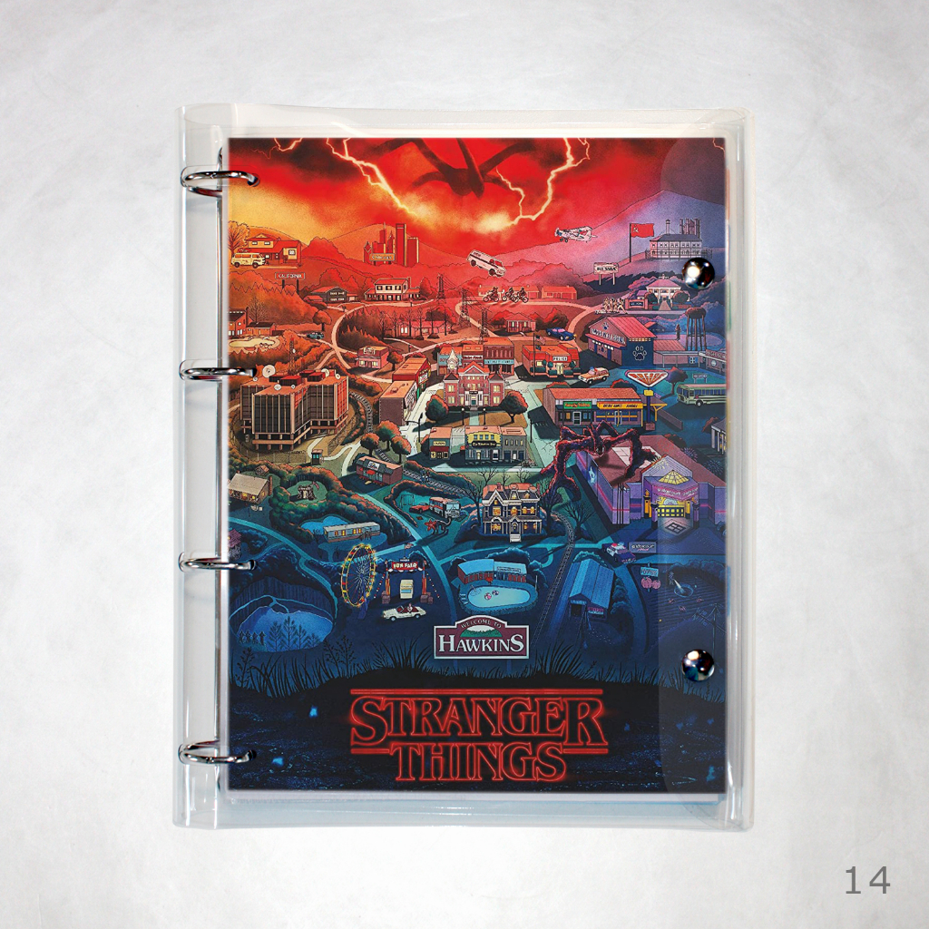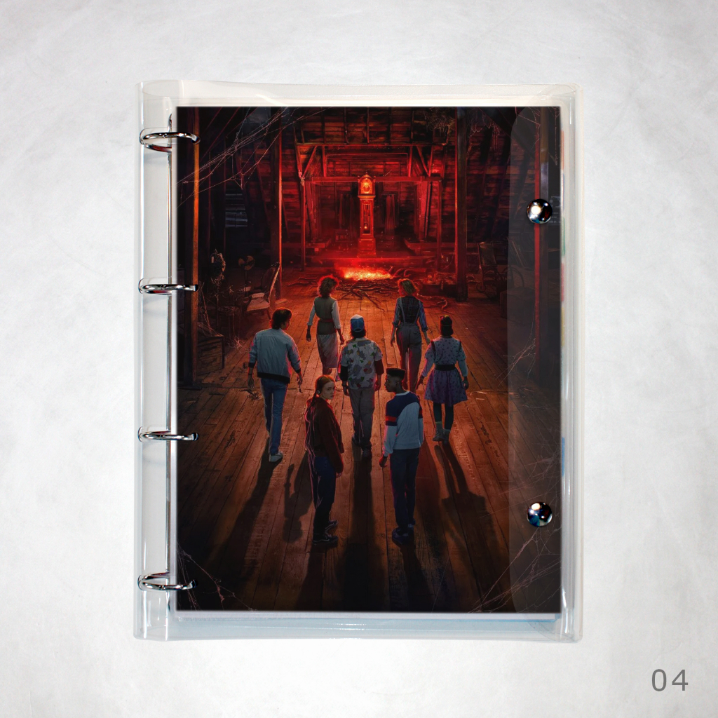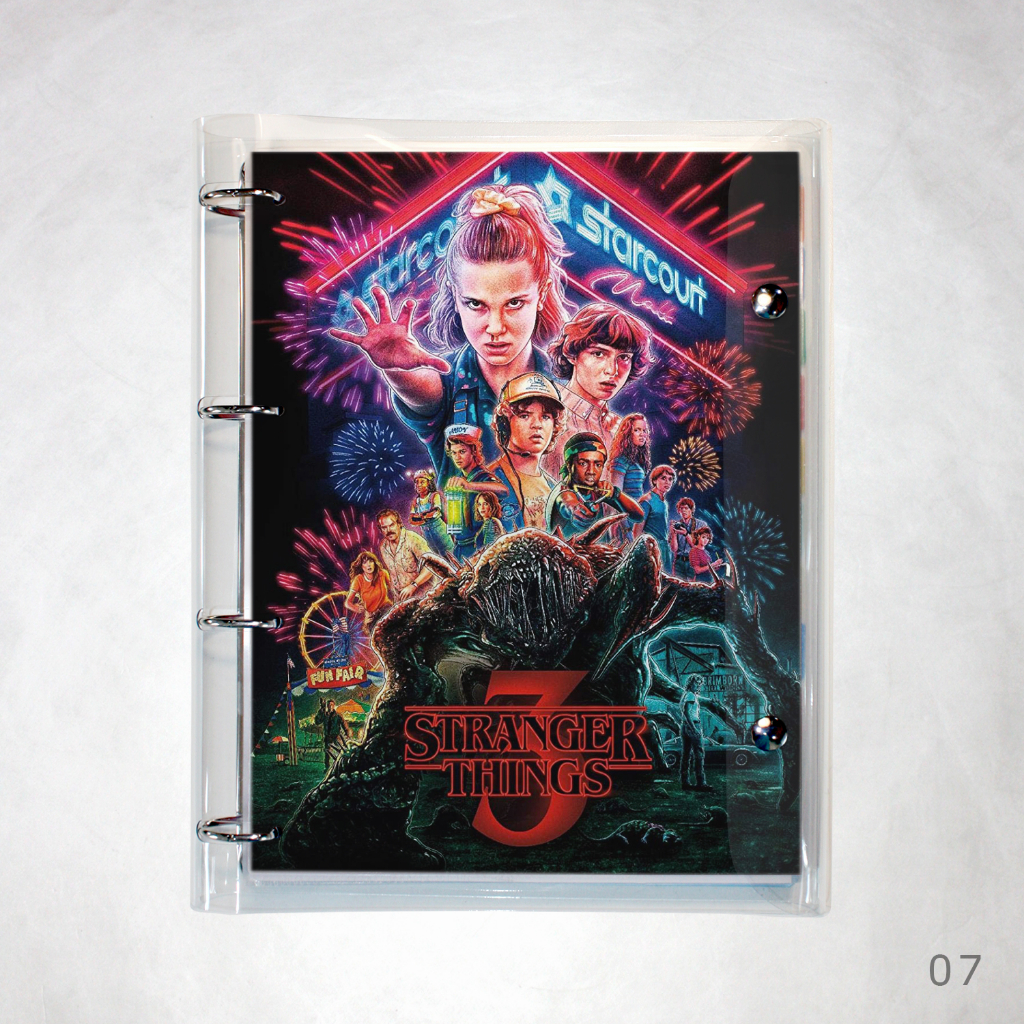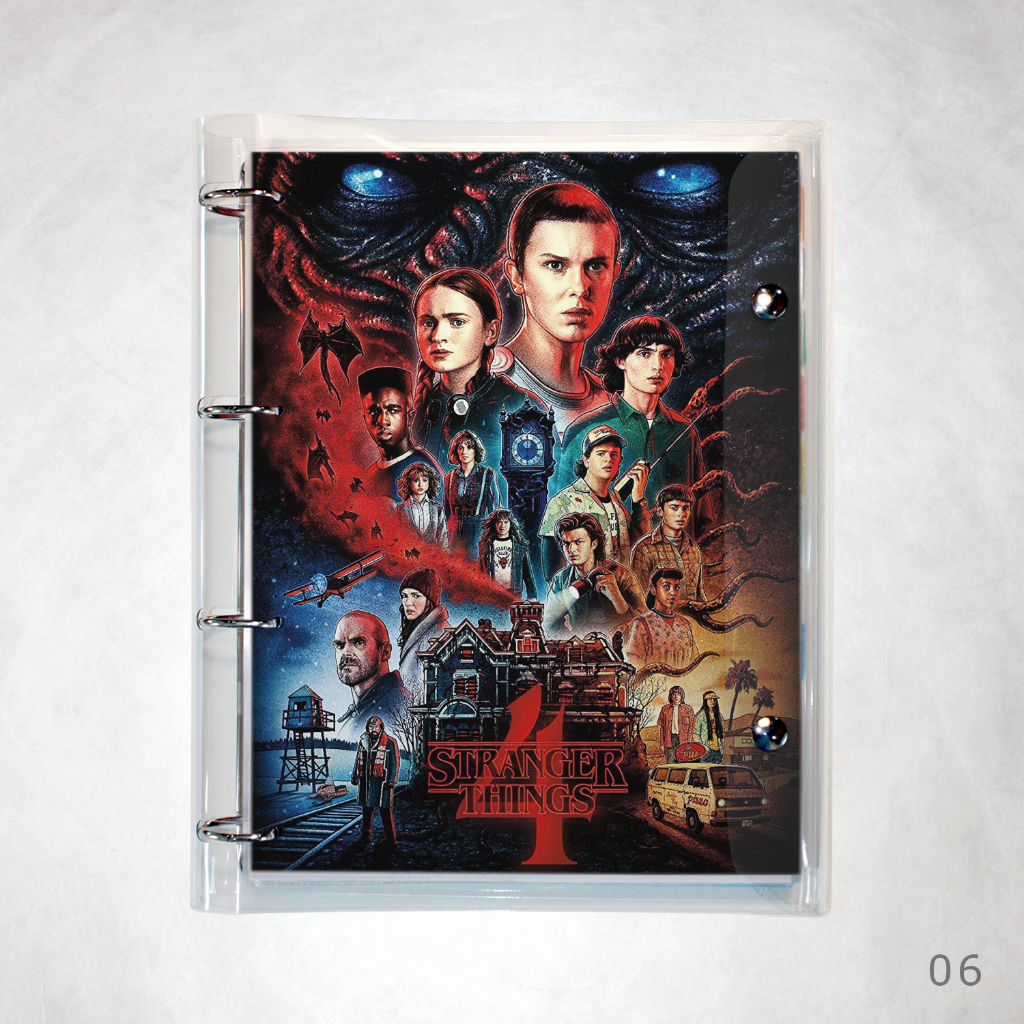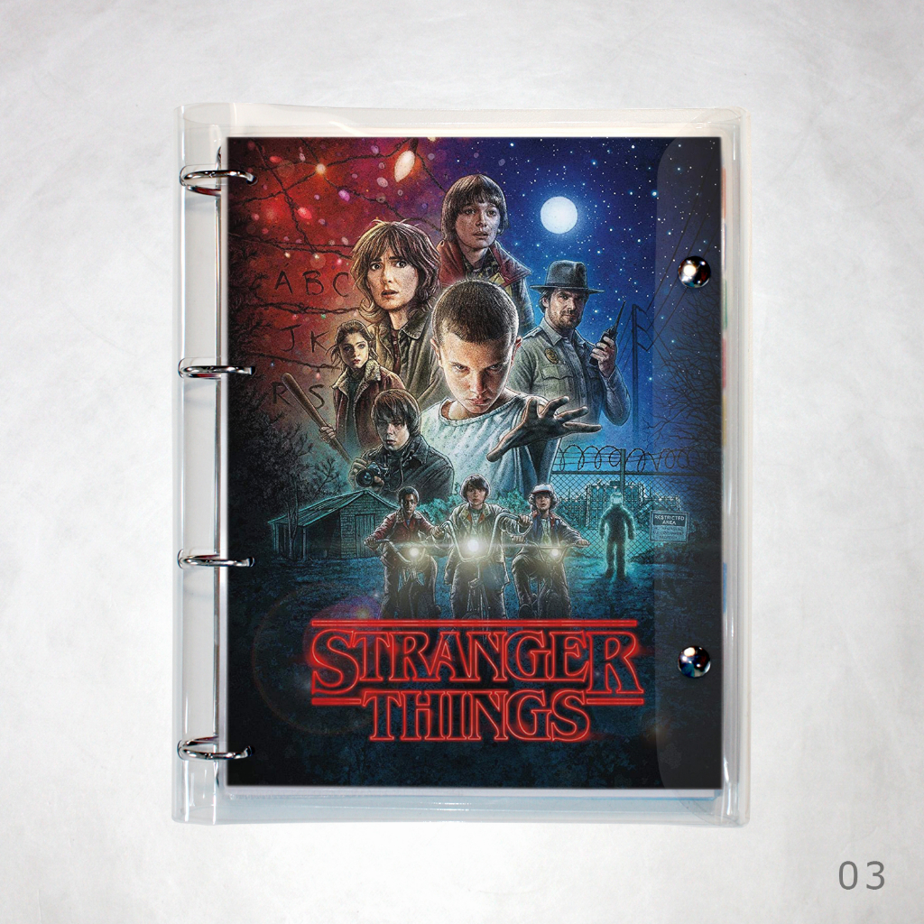 Caderno Argolado Fichário Stranger Things universitário cristal transparente 250 folhas + divisórias