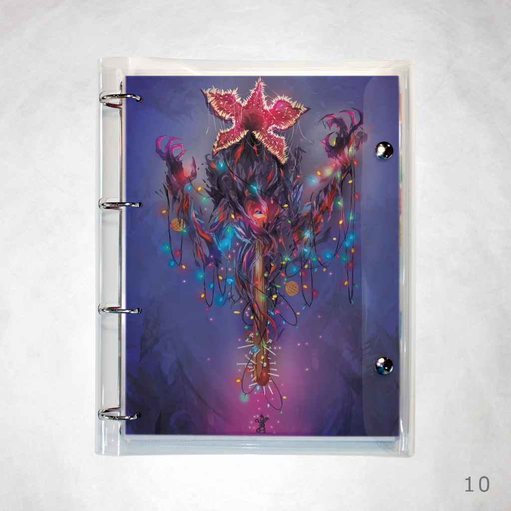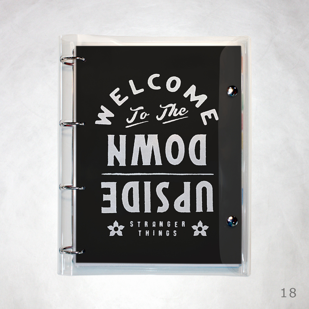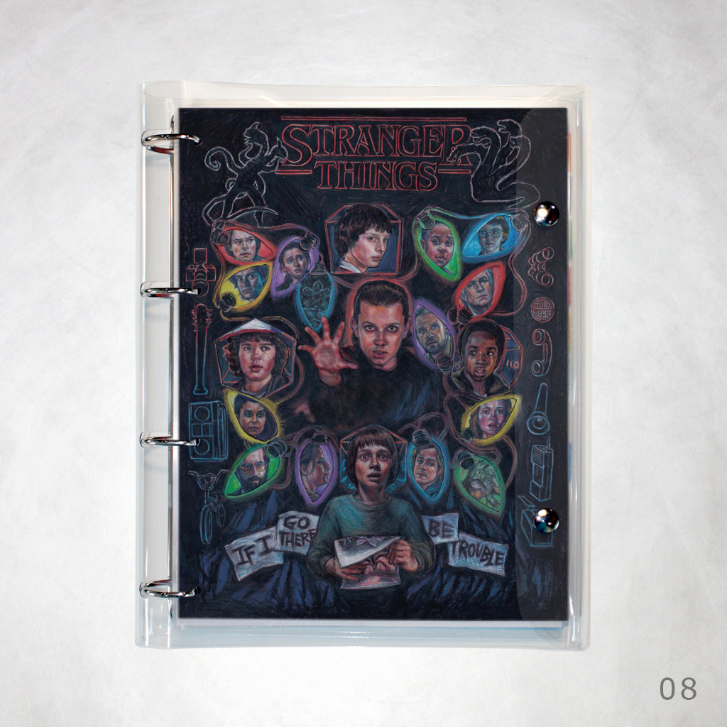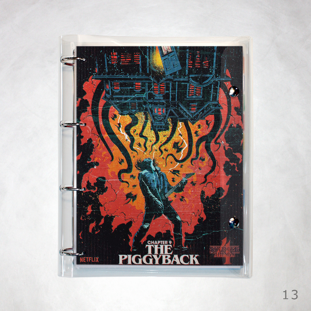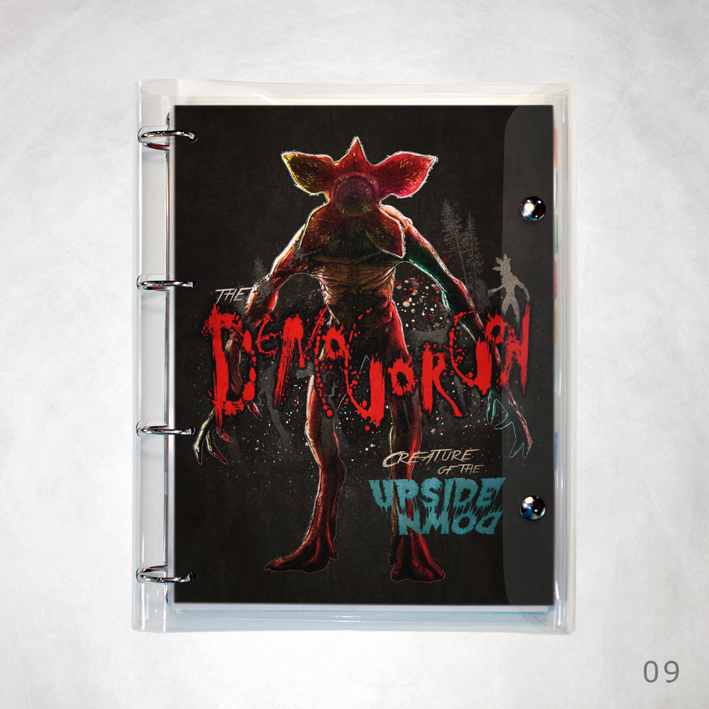 Caderno Argolado Fichário Stranger Things universitário cristal transparente 250 folhas + divisórias