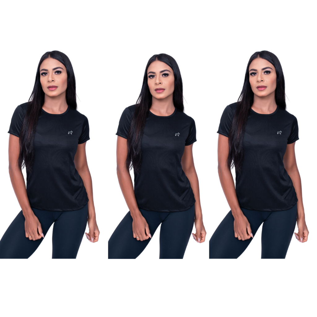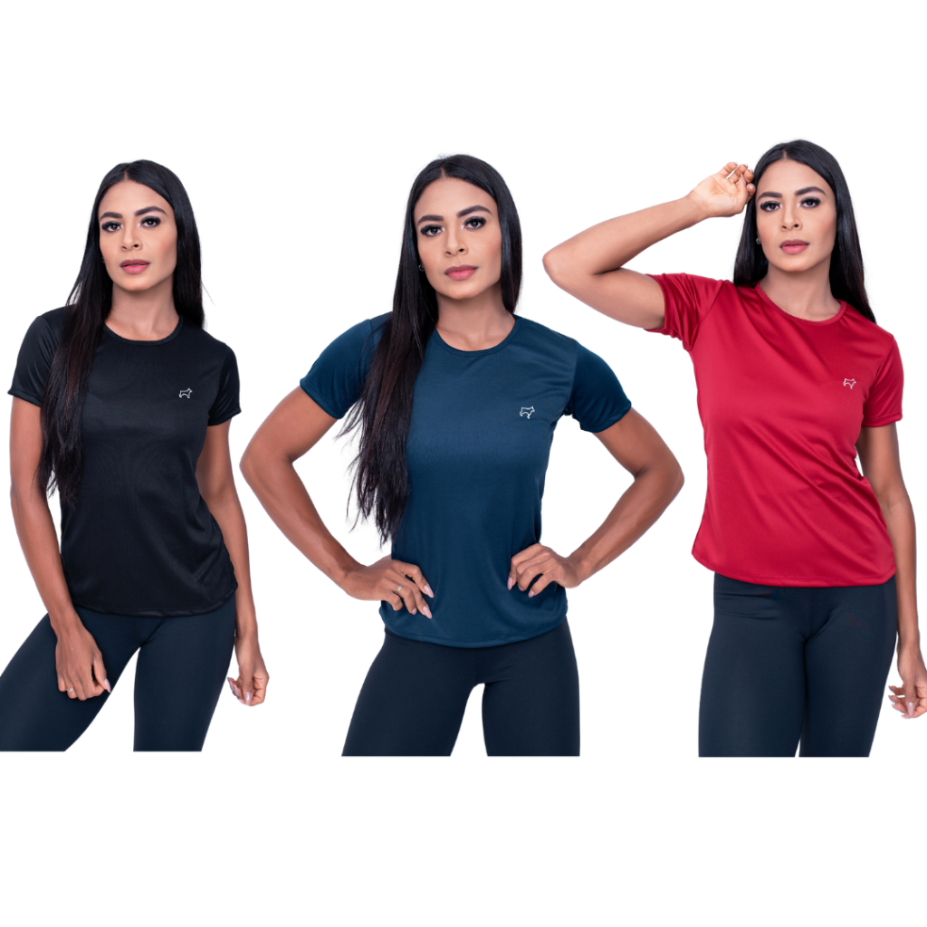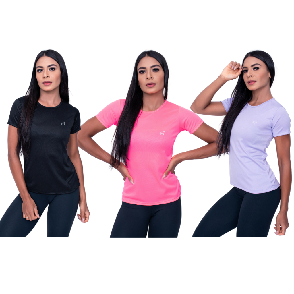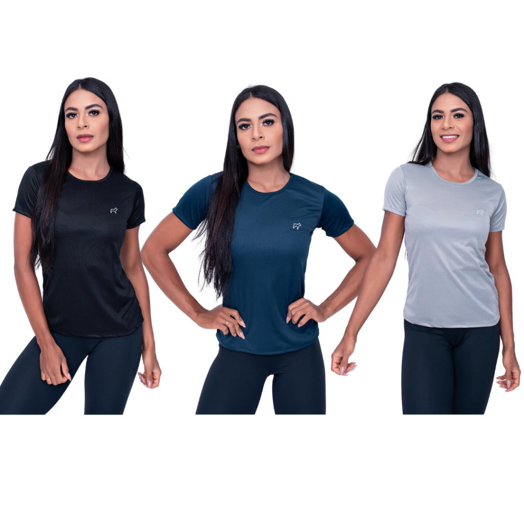 Kit 3 Camiseta Academia Feminina Treino Esportes Parvori