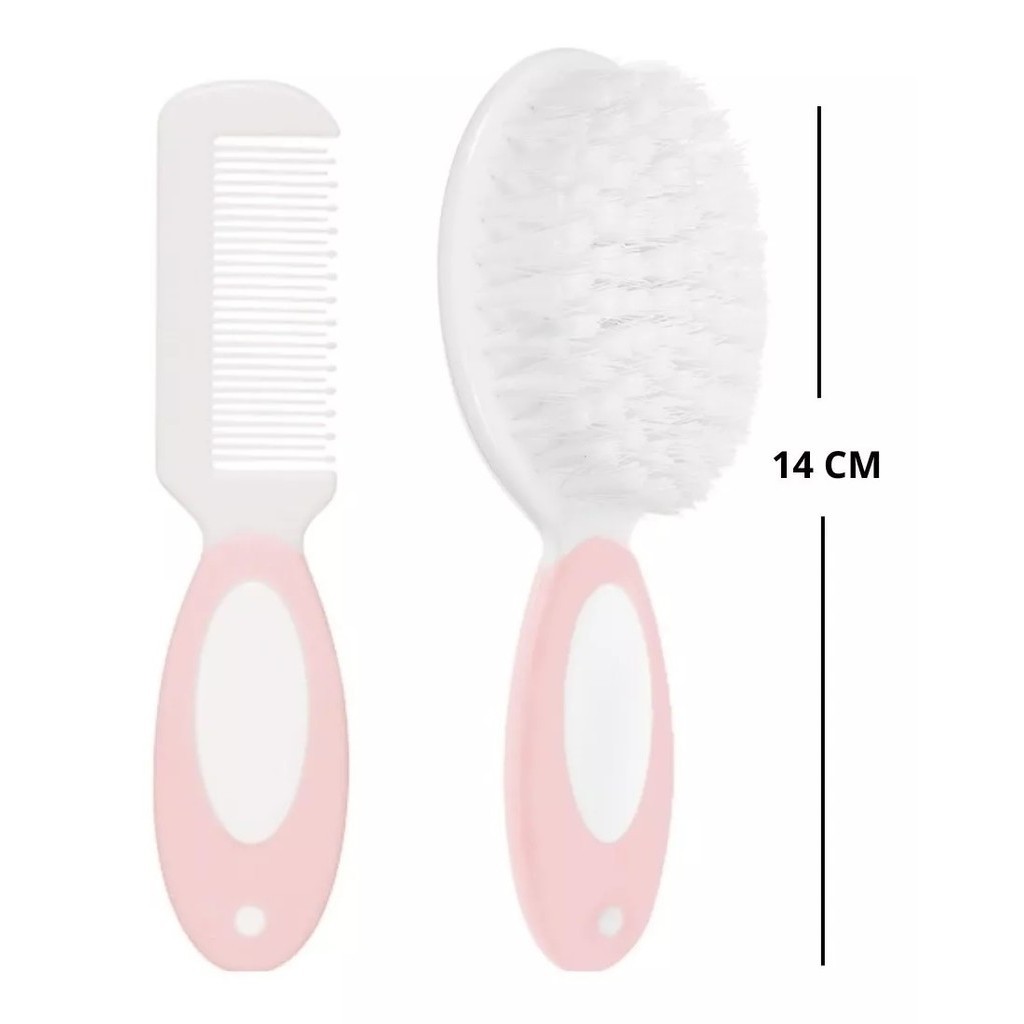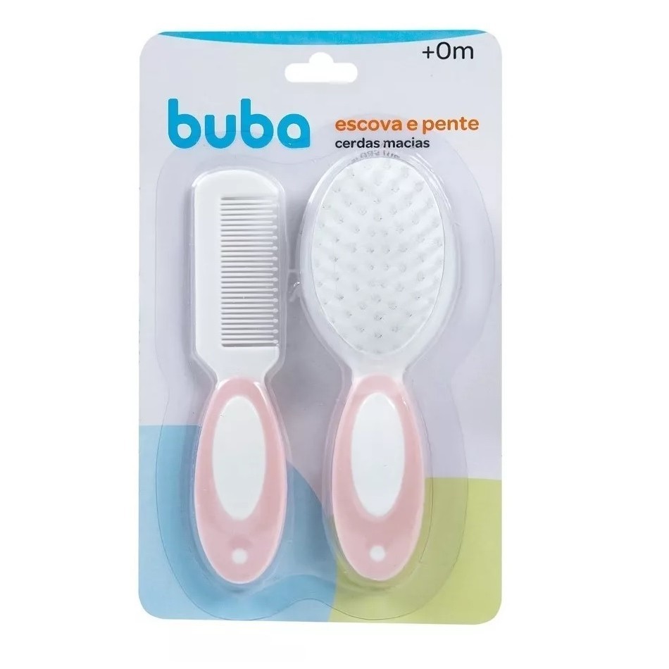 Kit Escova E Pente De Cabelo Bebe Infantil Cerdas Macias Buba Rosa