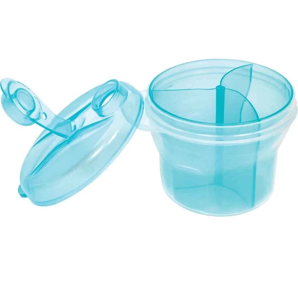 Pote Dosador Para Leite Em Pó Com 3 Compartimento Divisória Rosa Azul 300 ml Buba