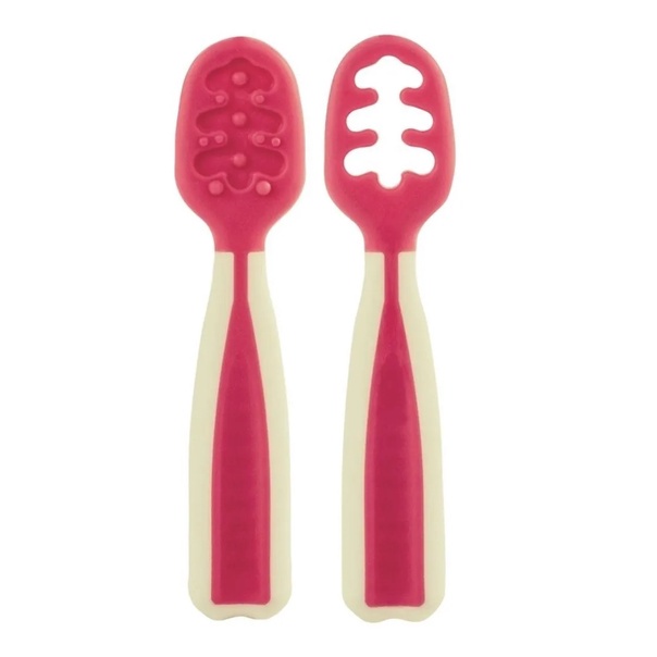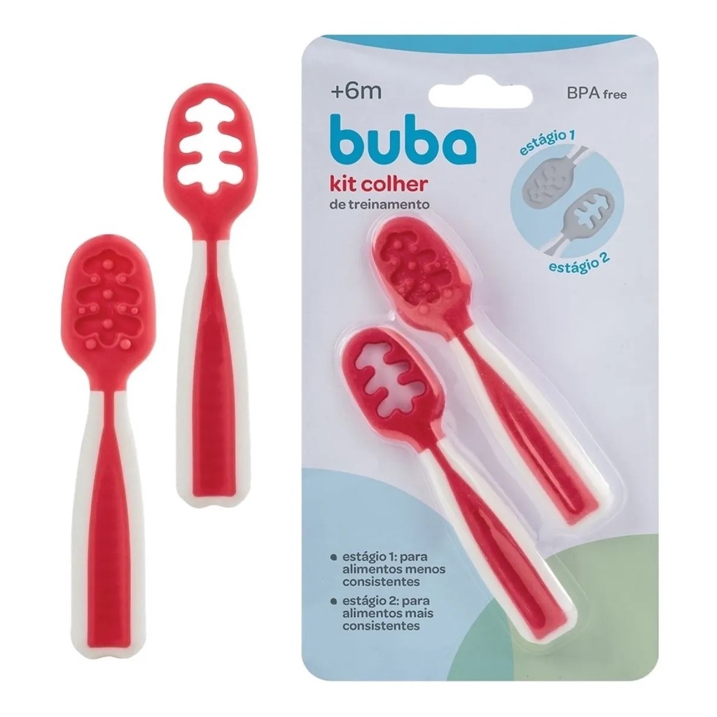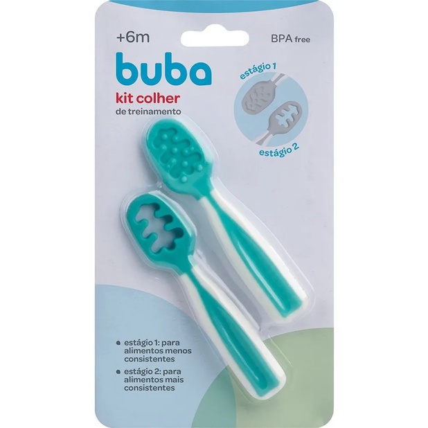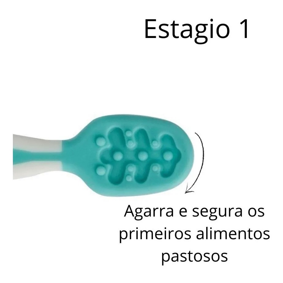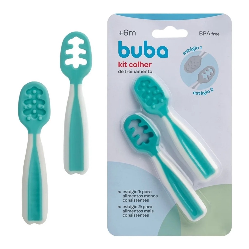 Kit 2 Colheres De Treinamento Auto Alimentação Bebês Buba Verde Cinza Rosa Oferta