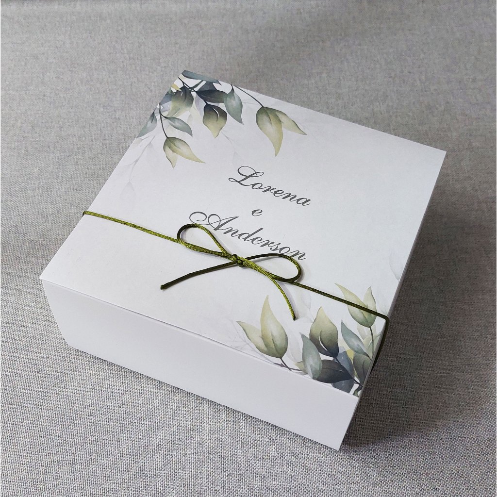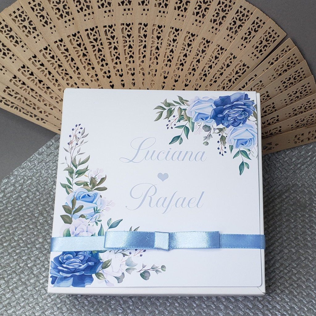 Caixa convite padrinhos de casamento personalizada azul serenity 14x14x6cm