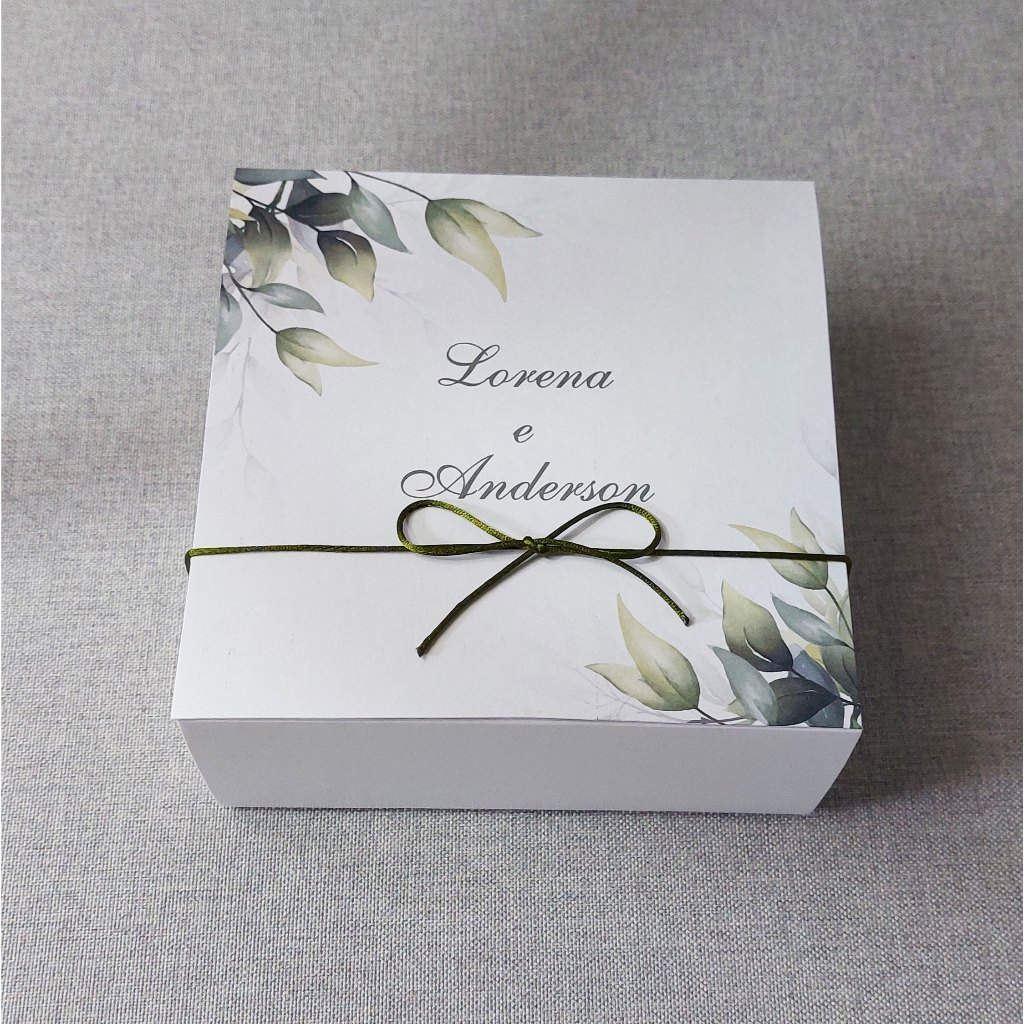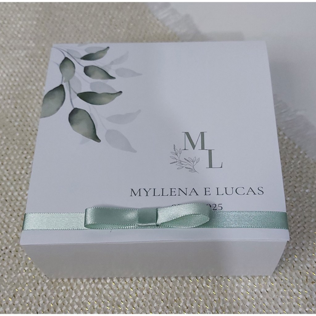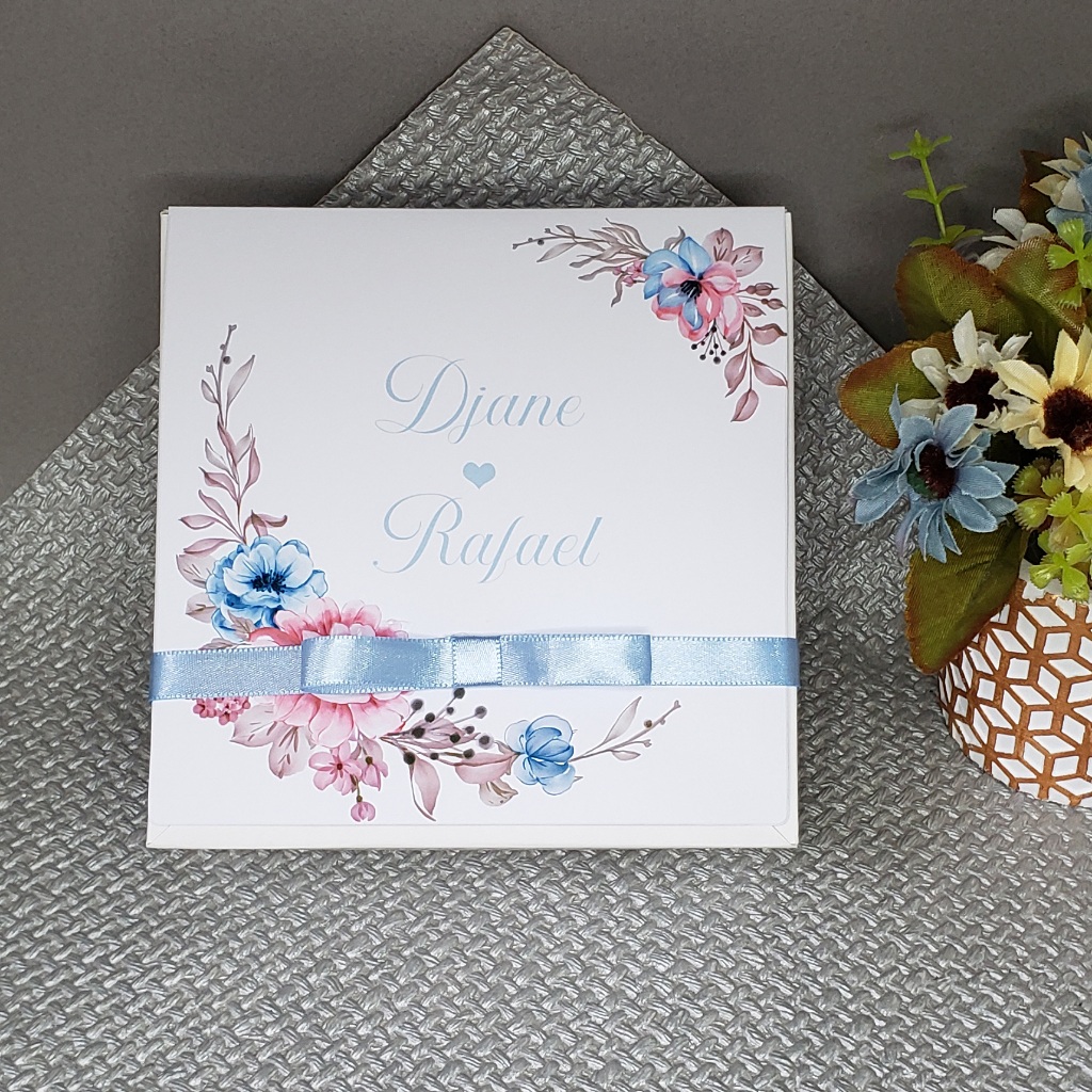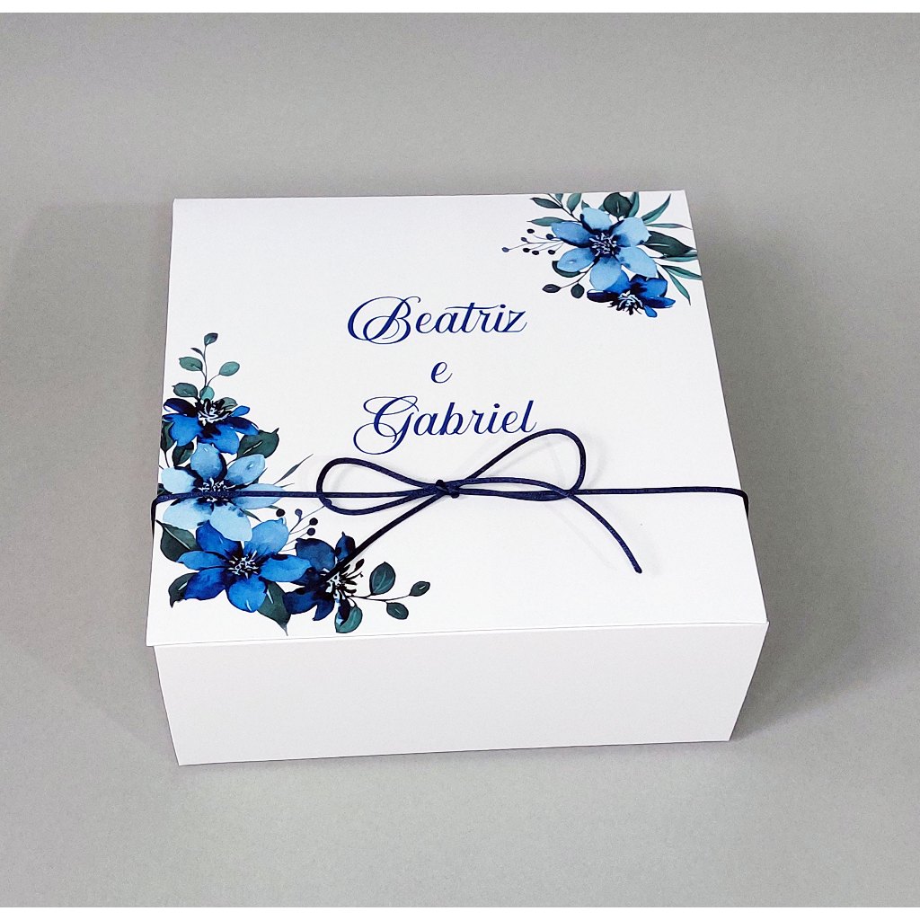 Caixa convite padrinhos de casamento personalizada azul serenity 14x14x6