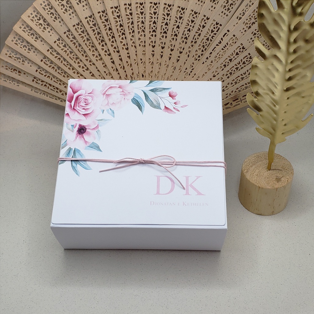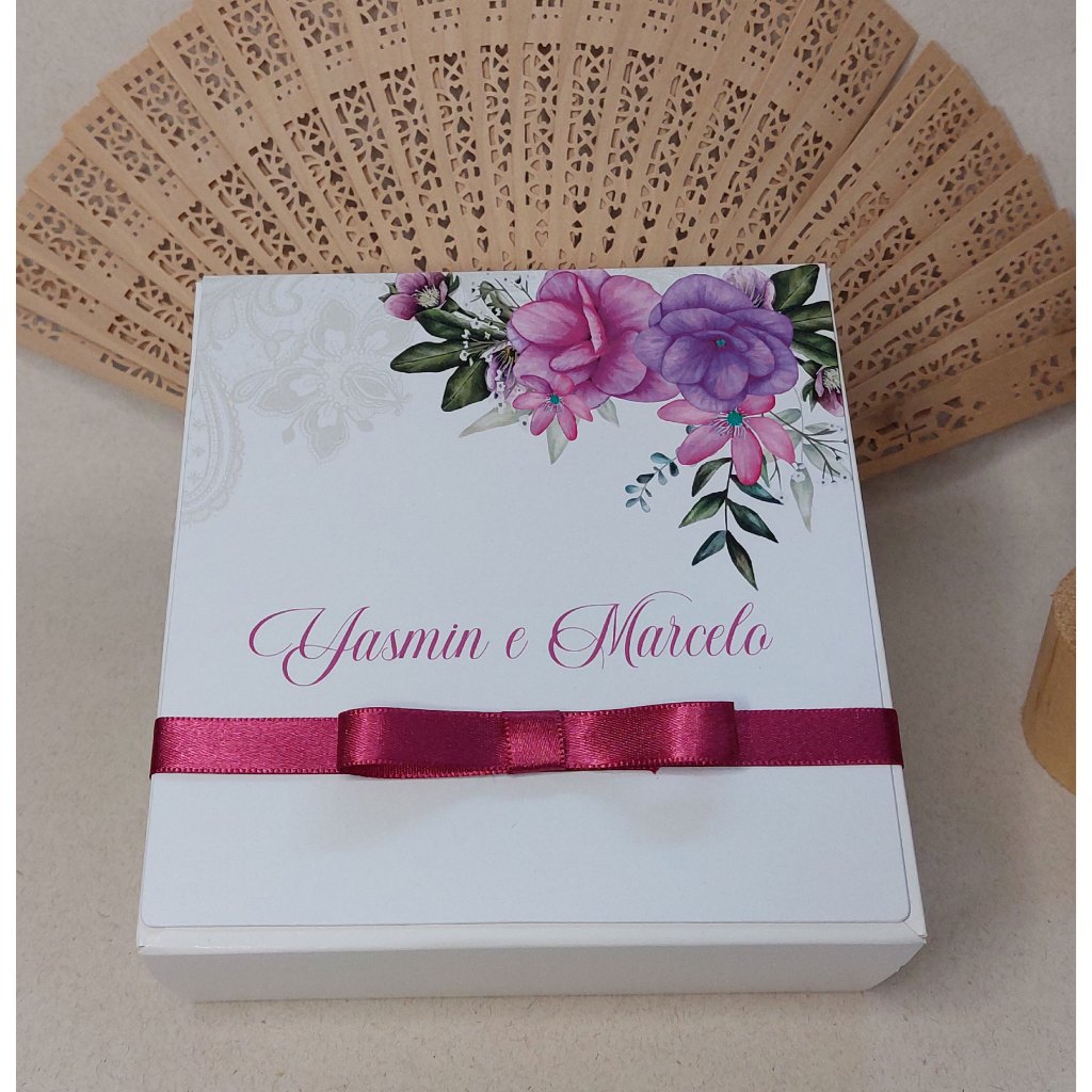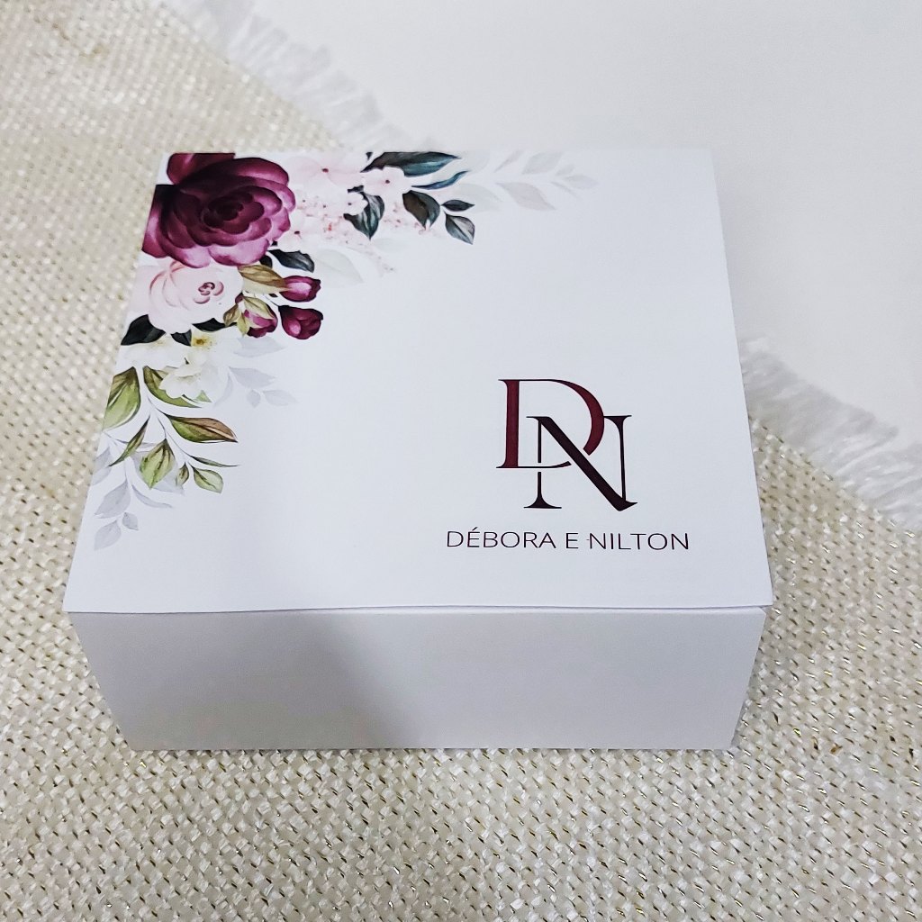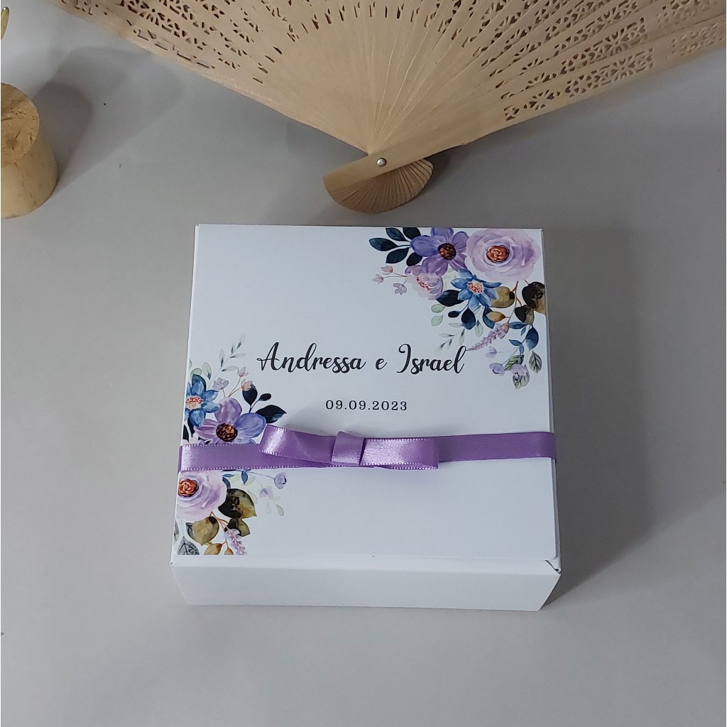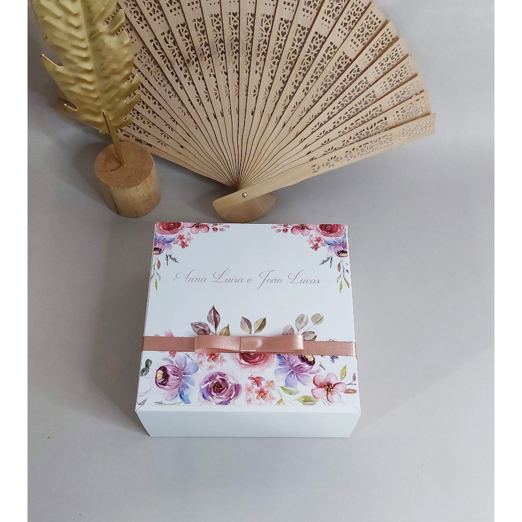 Caixa convite padrinhos de casamento personalizada azul serenity 14x14x6