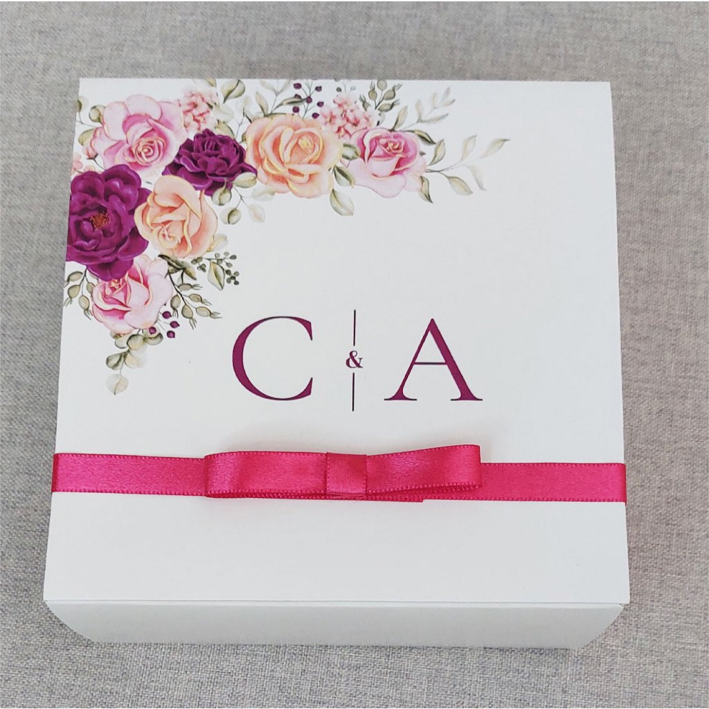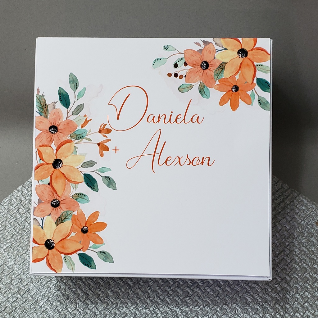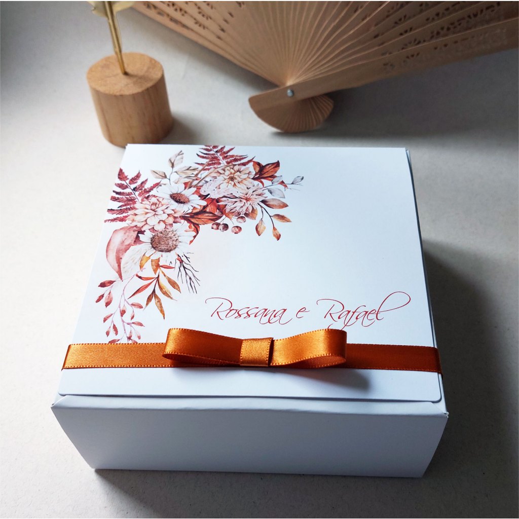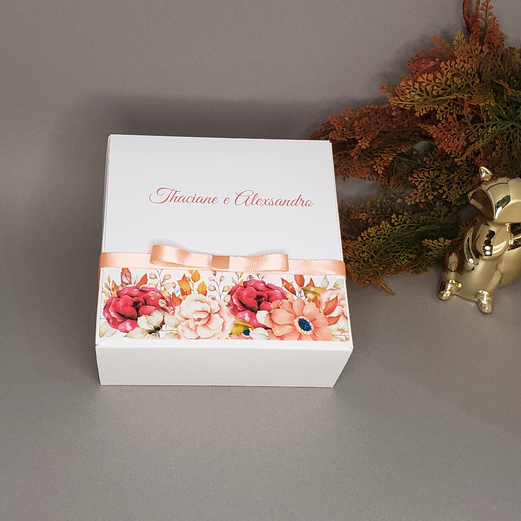 Caixa convite padrinhos de casamento personalizada azul serenity 14x14x6