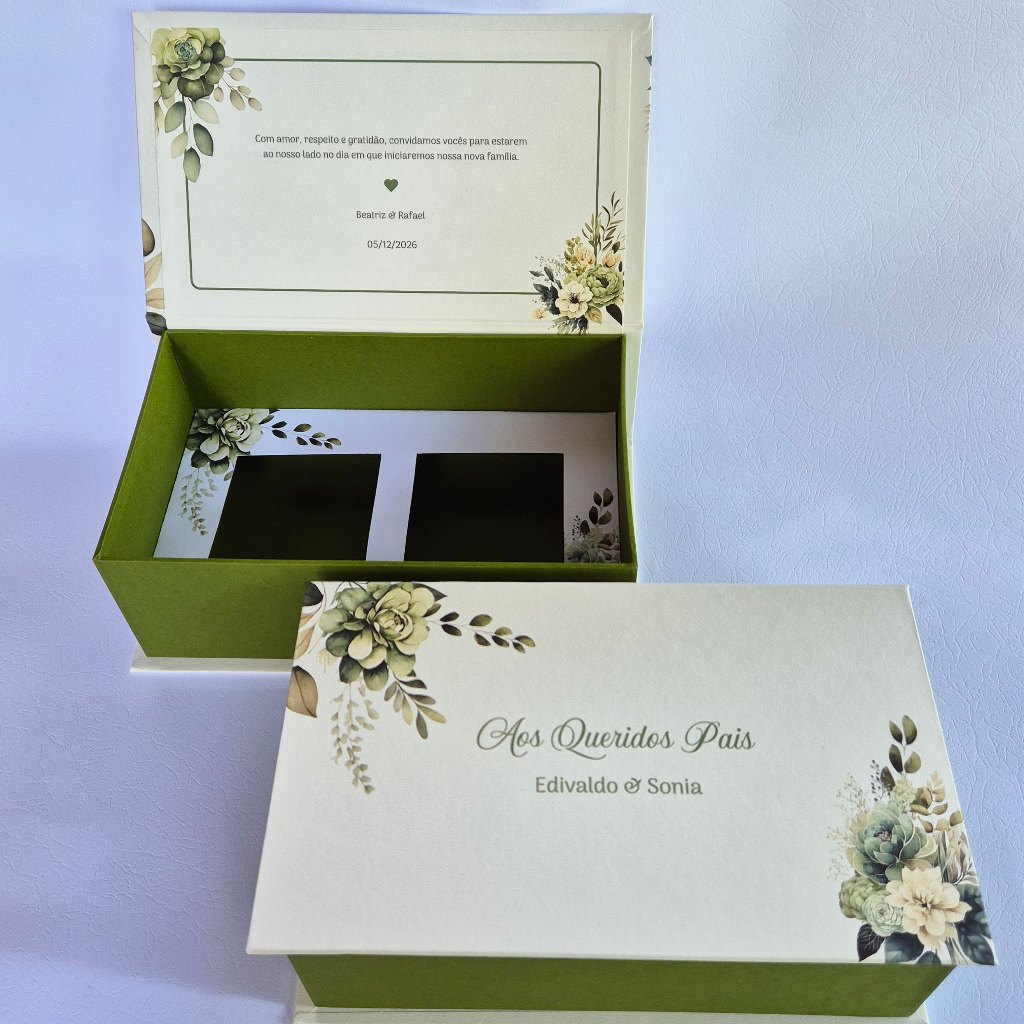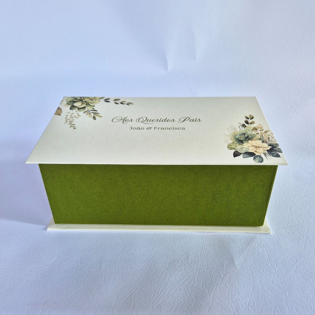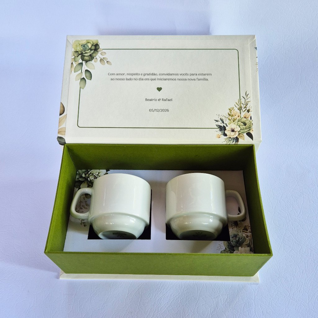 Caixa personalizada para pais dos noivos - caixa para 2 xicaras - verde oliva