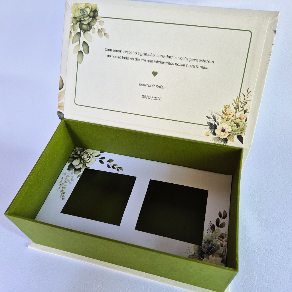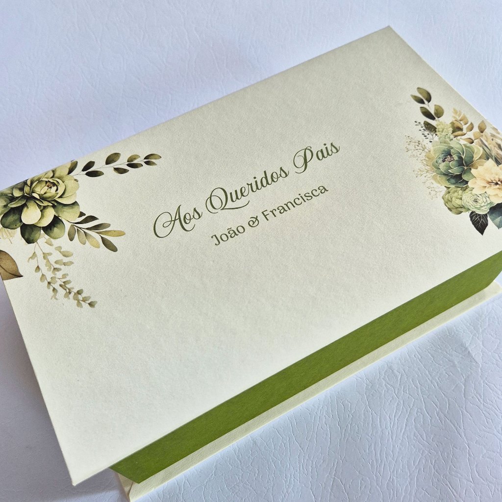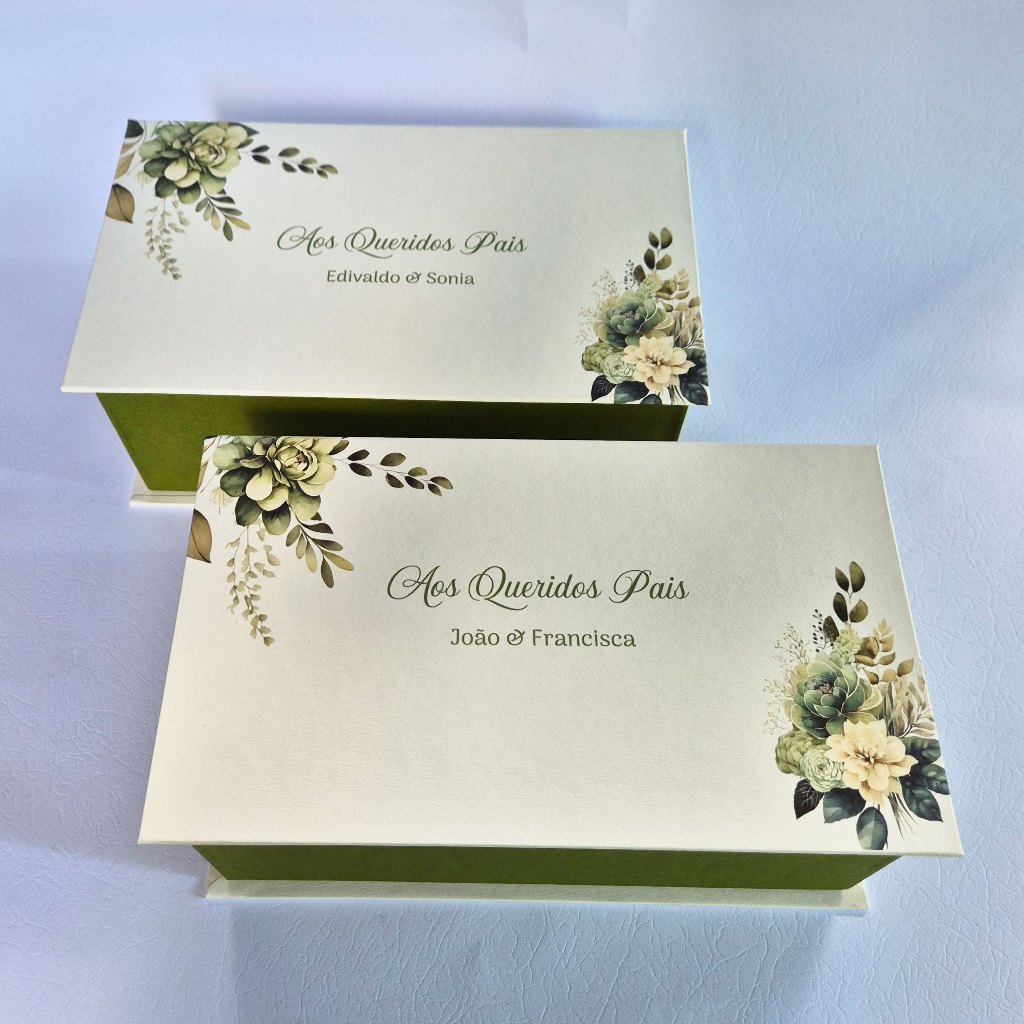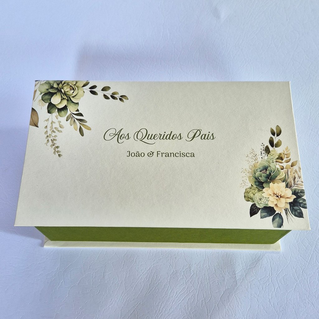 Caixa personalizada para pais dos noivos - caixa para 2 xicaras - verde oliva