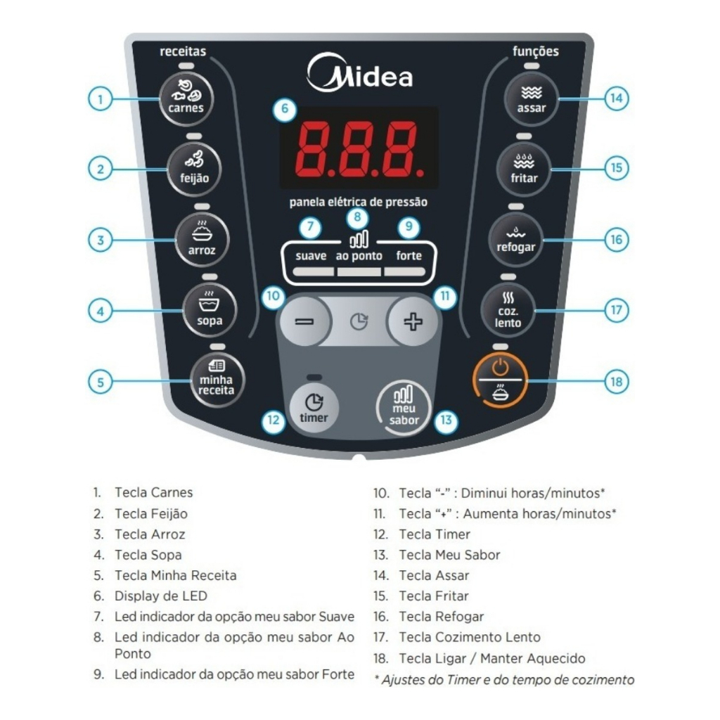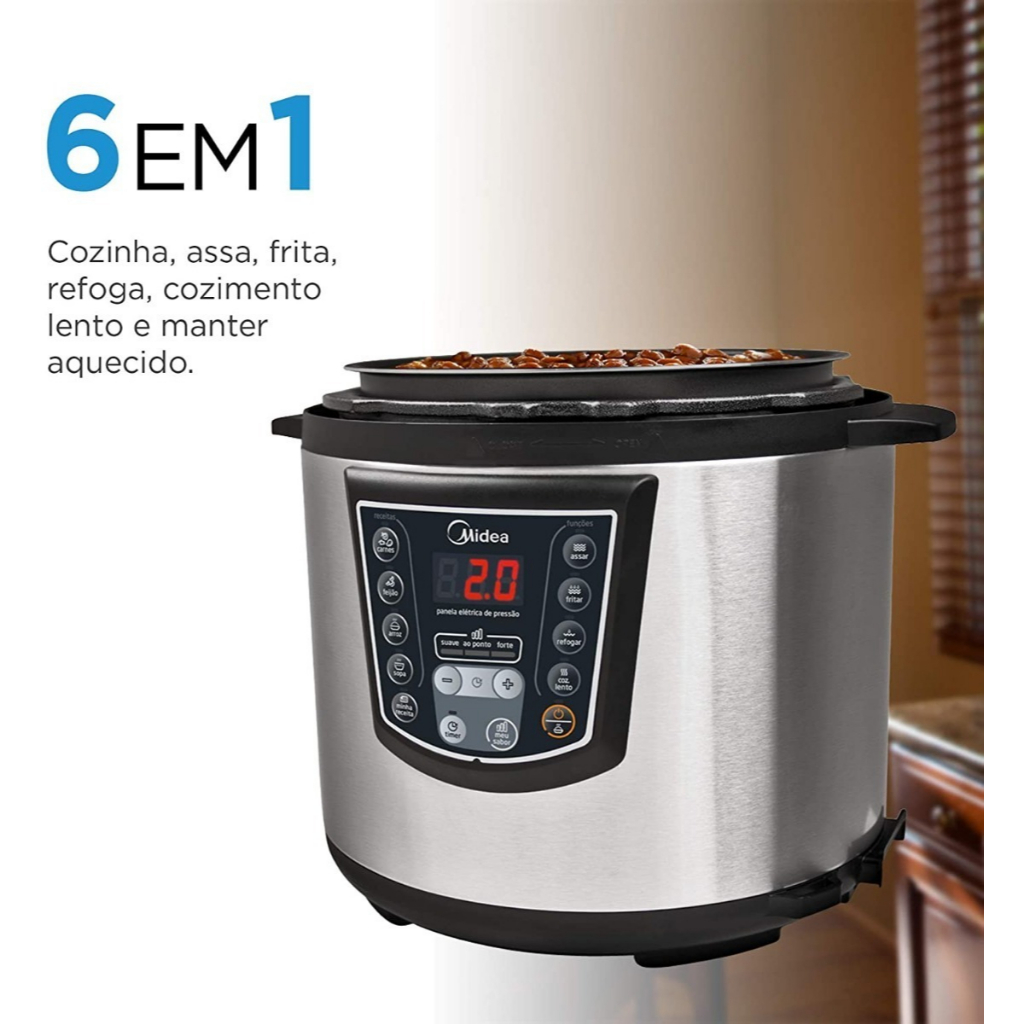 Panela De Pressão Elétrica 6L Digital Midea PPA71/72 Inox