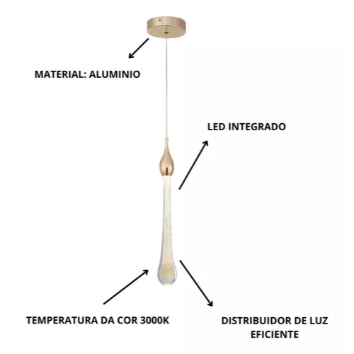 Lustre Luminária Pendente Cristal Bolhas Gota Led Dourado Bivolt