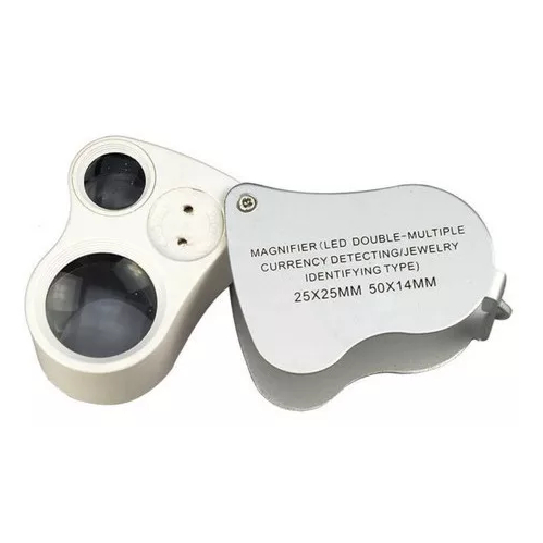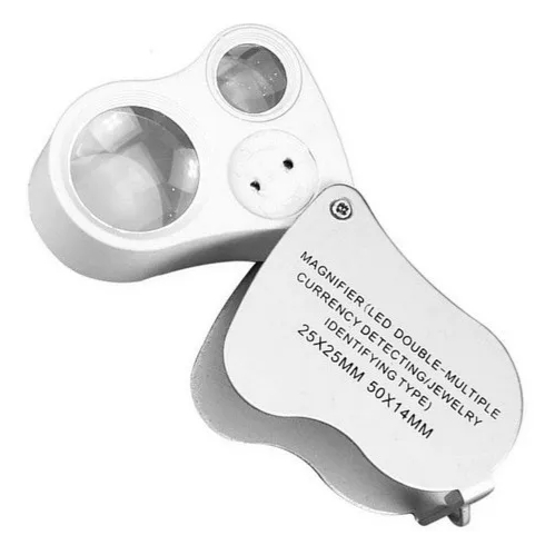 Lupa De Mão 50x 25x Portátil Dobrável Led Uv Detector