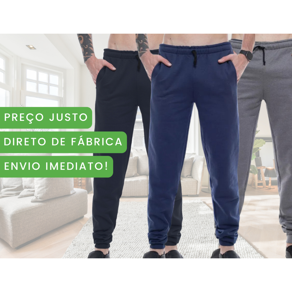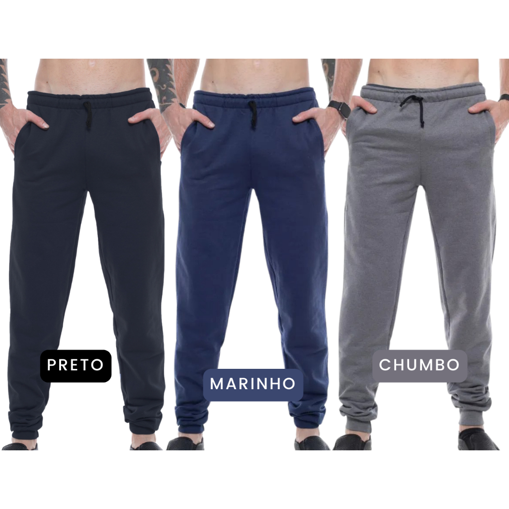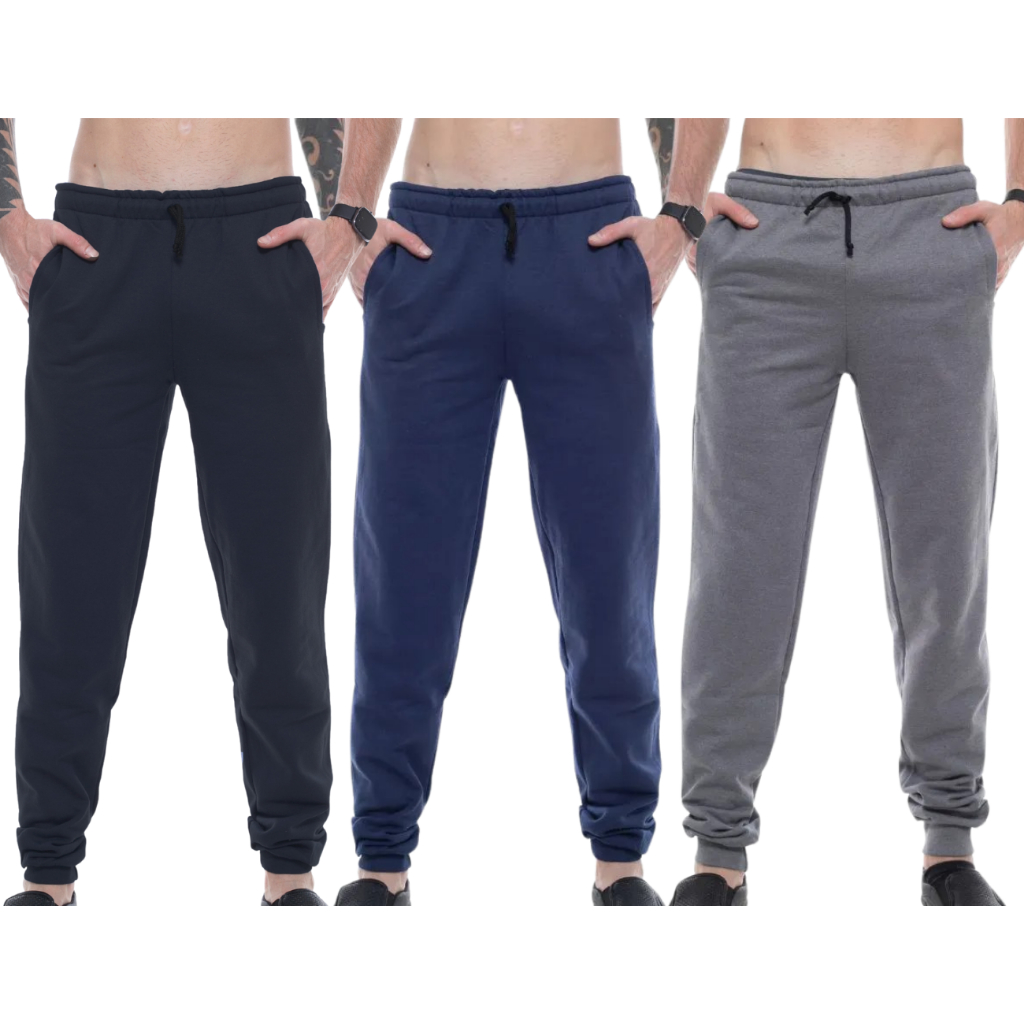 Kit 3pçs Calças Moletom Peluciada Unissex C/ Punho: 3x Mais Conforto e Estilo P/ Seu Dia a Dia
