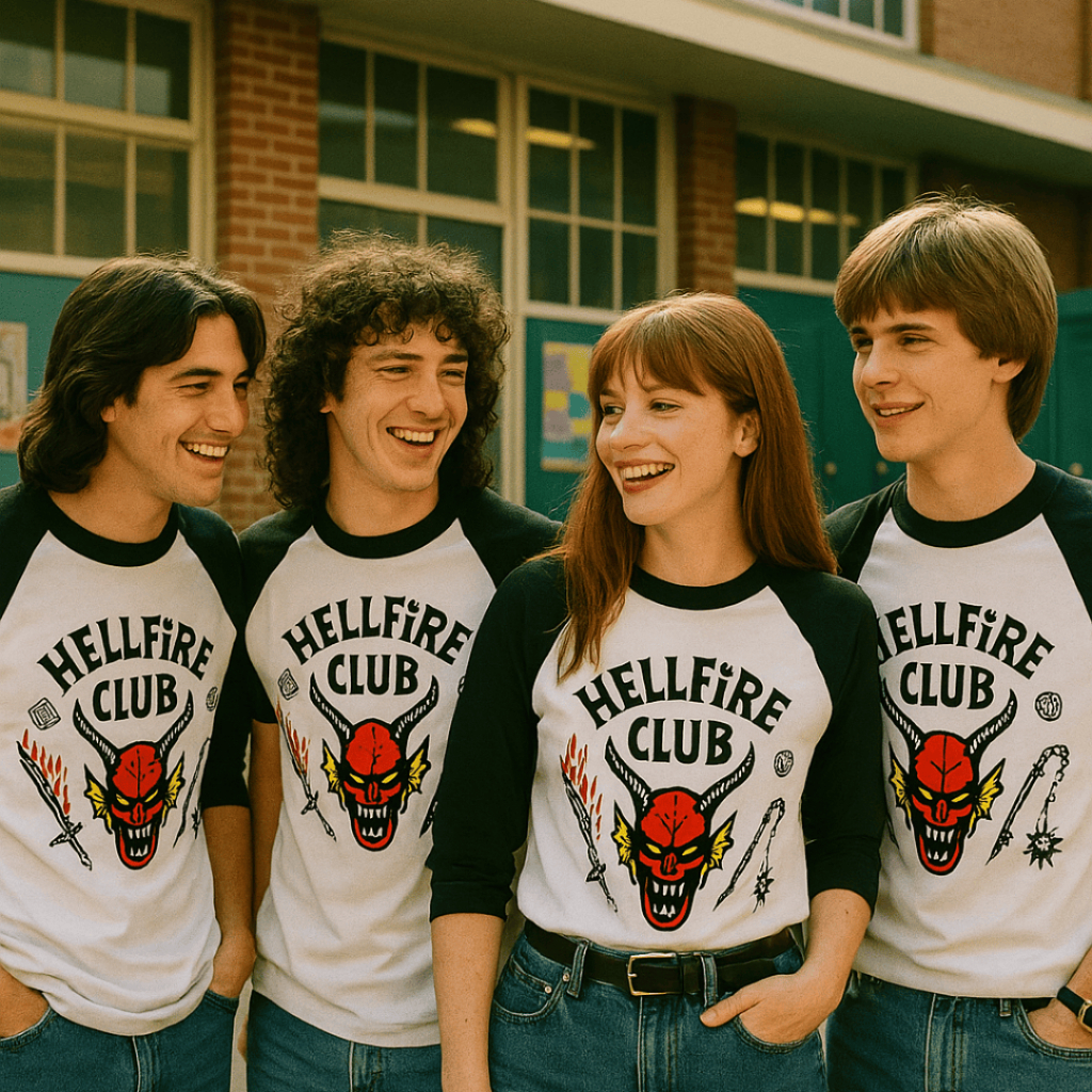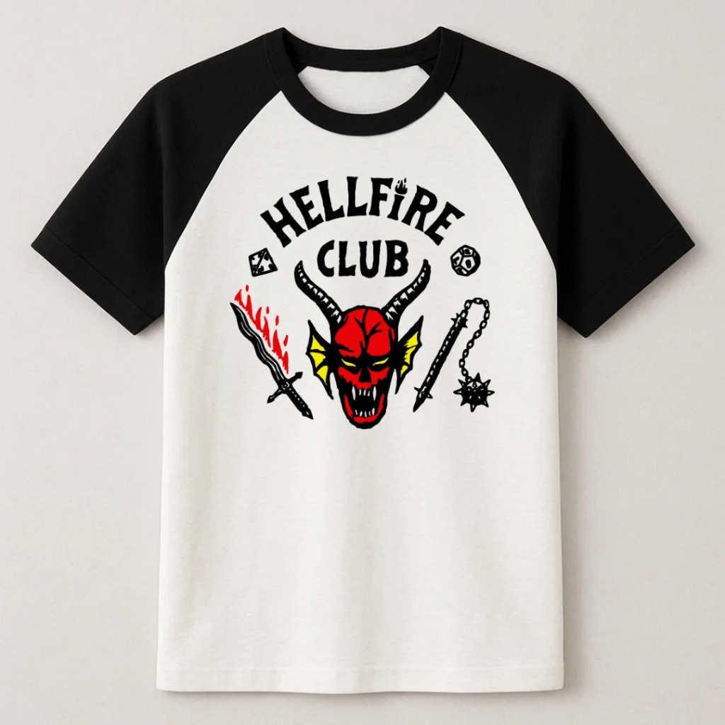 Hellfire Club Camiseta Envio Imediato Personalizada Stranger Things Cosplay Raglan 3/4 Retrô