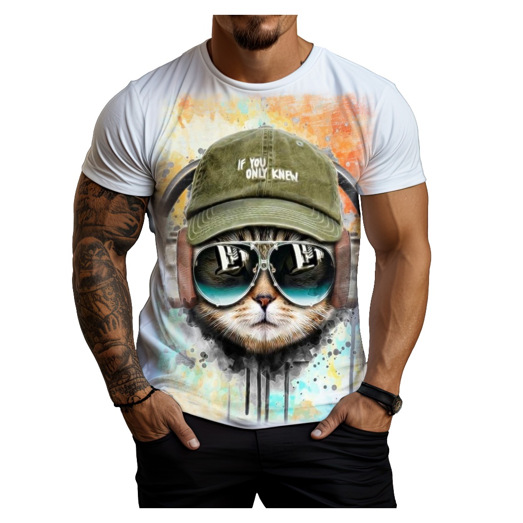Camiseta Masculina Gato DJ Óculos - REF: 051