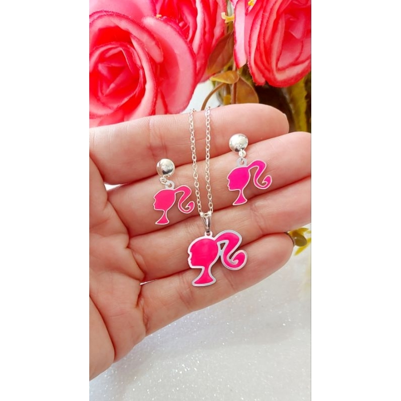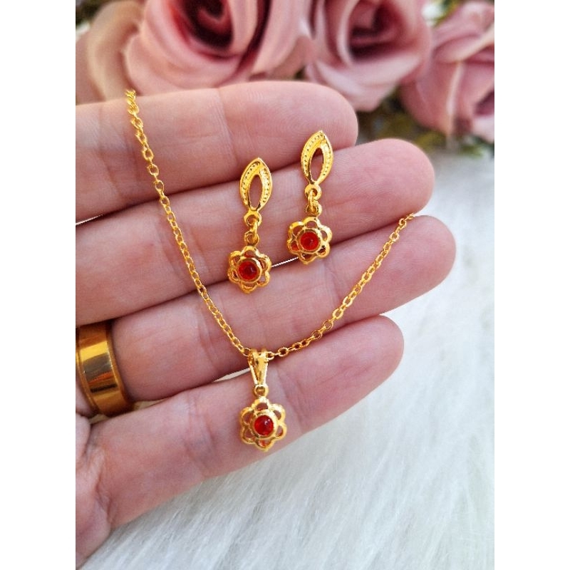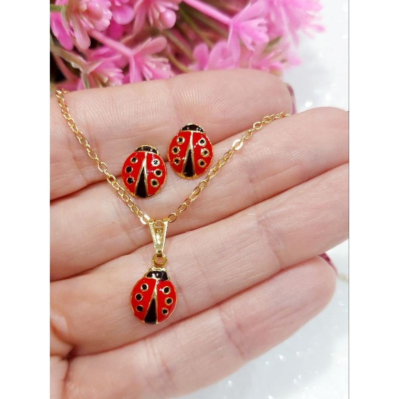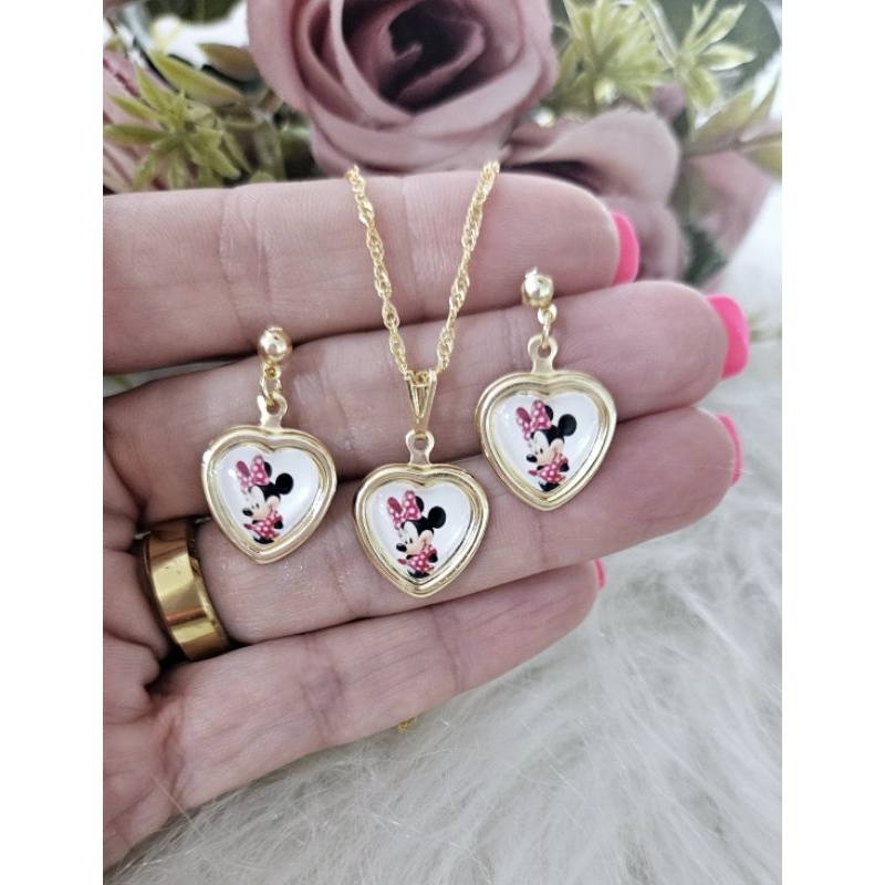 Colar e Brinco infantil folheado a ouro 18k menina estrela, Flor, flor pendurada gato