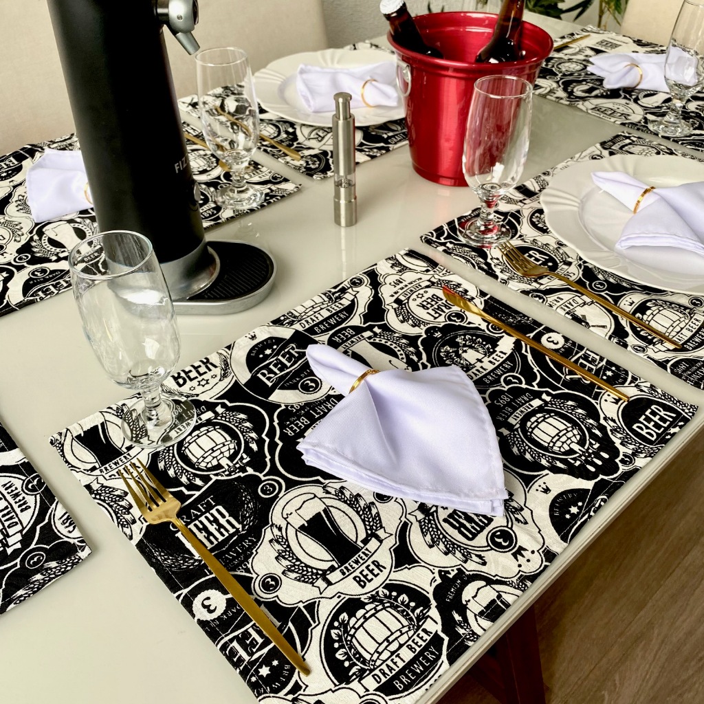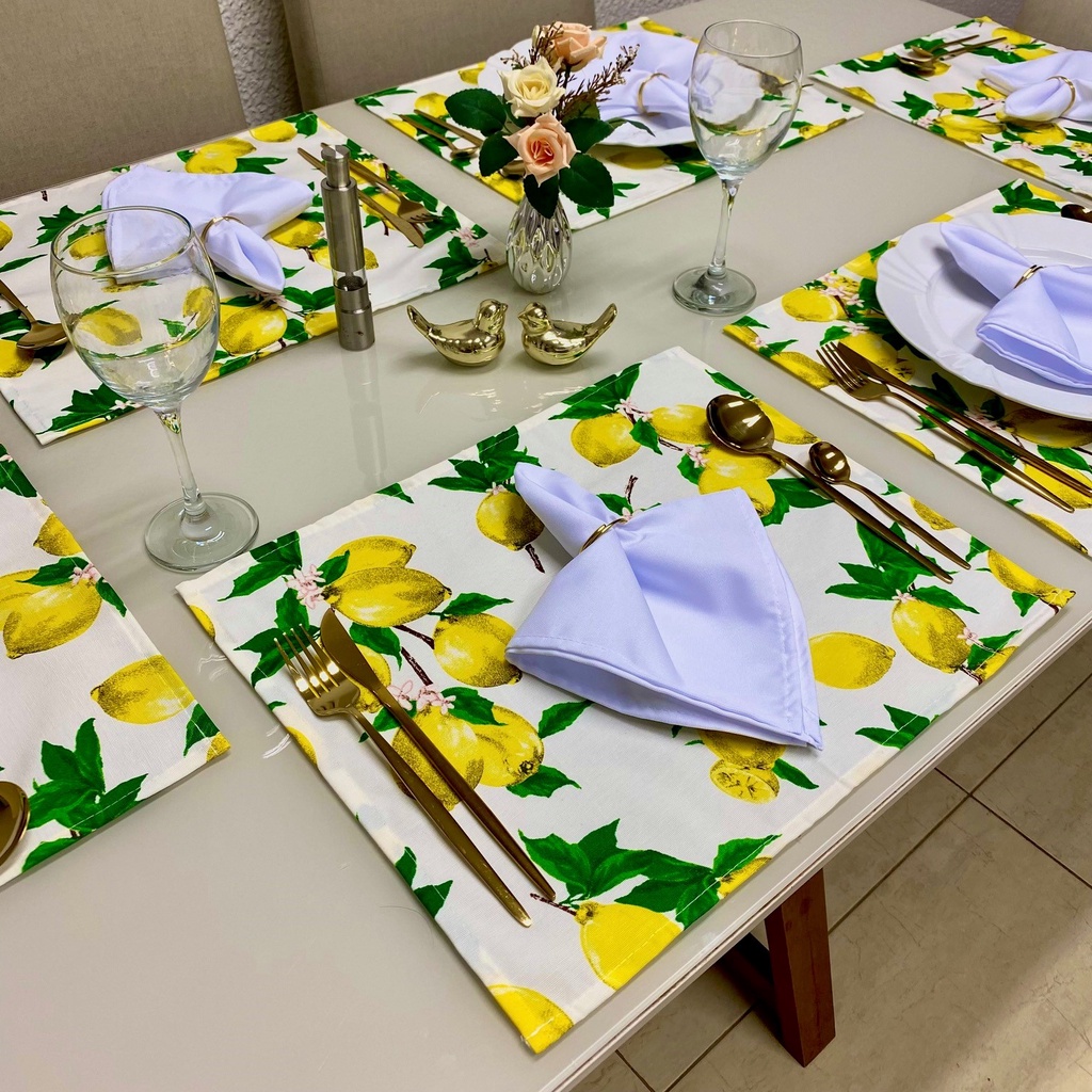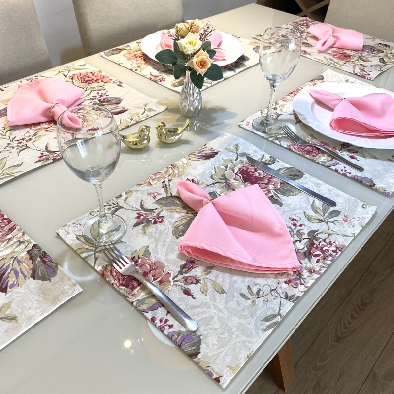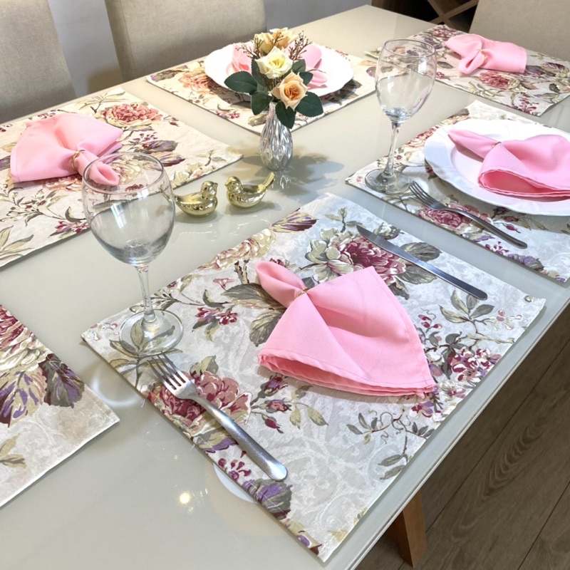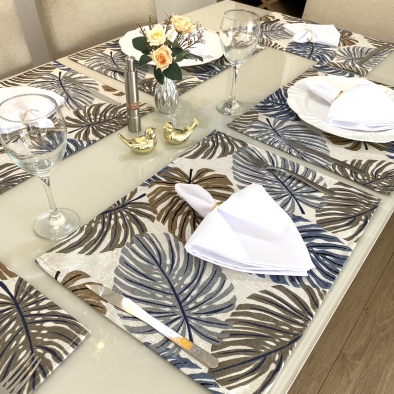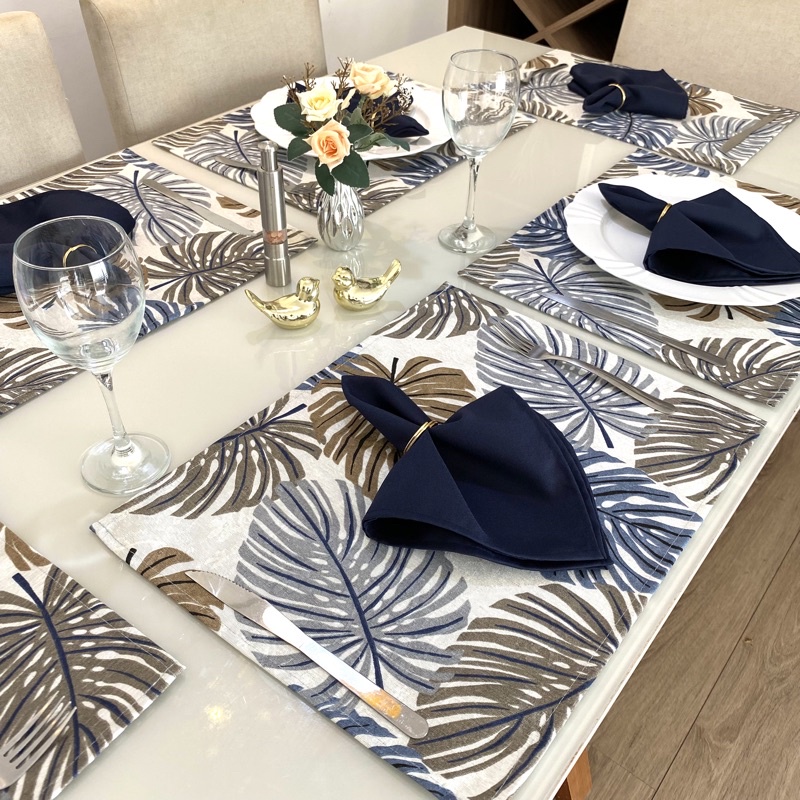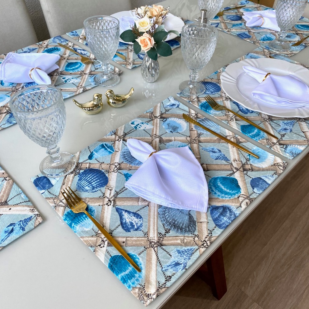 Jogo Americano Retangular 6 peças + 6 Guardanapos + 6 Porta Guardanapos