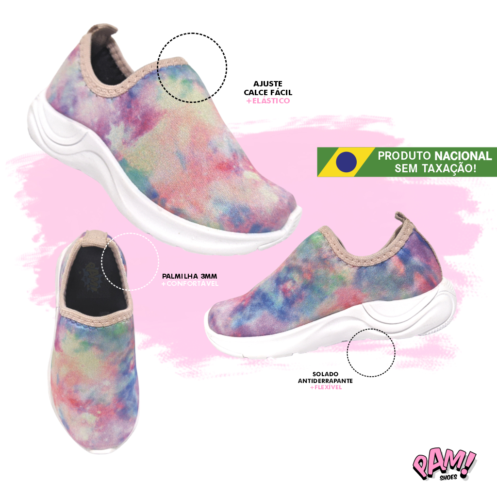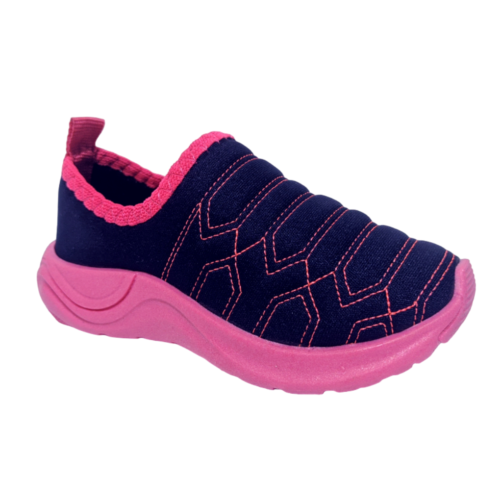 Tênis para menina Marinho e Pink Calce Fácil Slip on Confortável pronta entrega solado escuro sola colorida