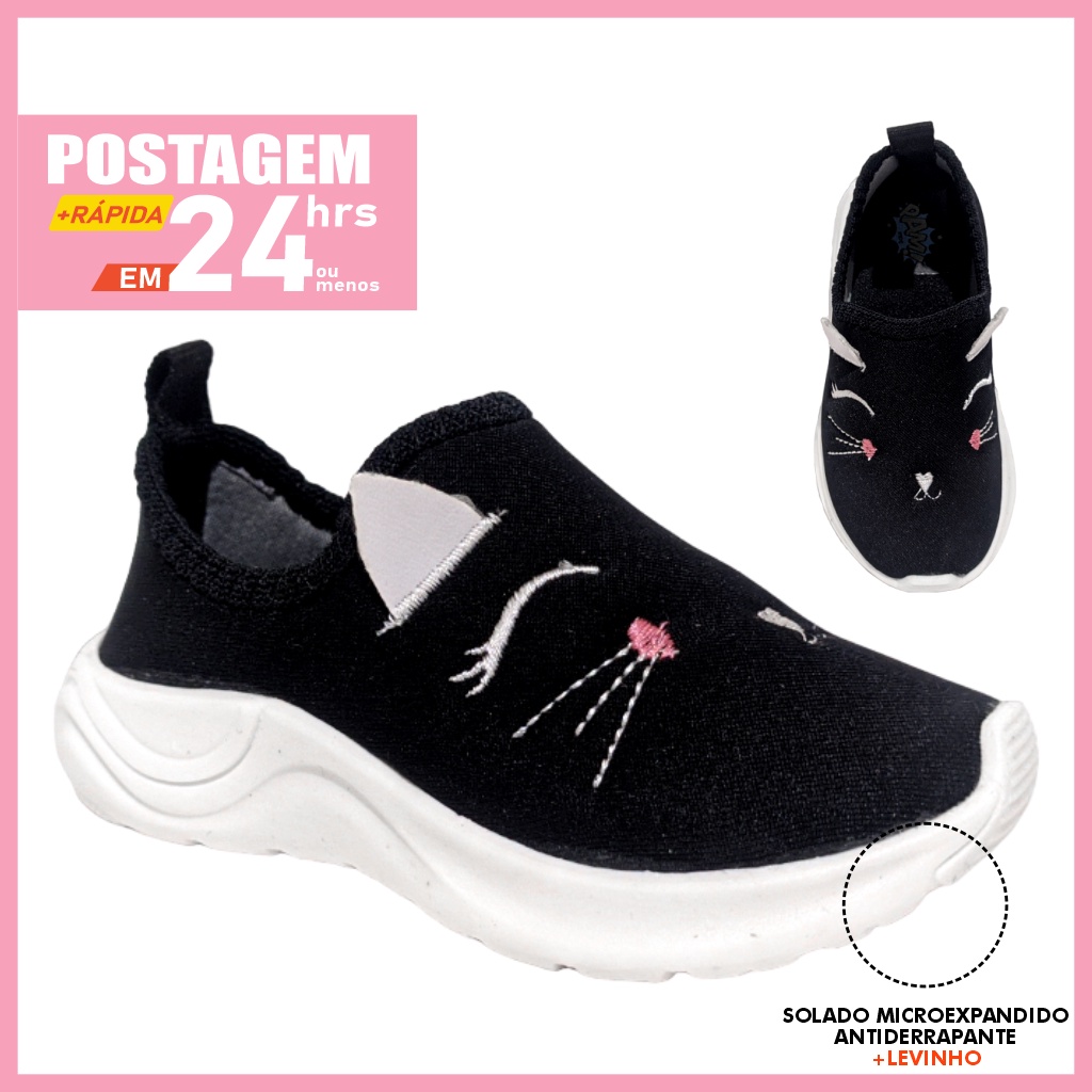 Tênis gatinha menina calce fácil sem cadarço levinho e macio