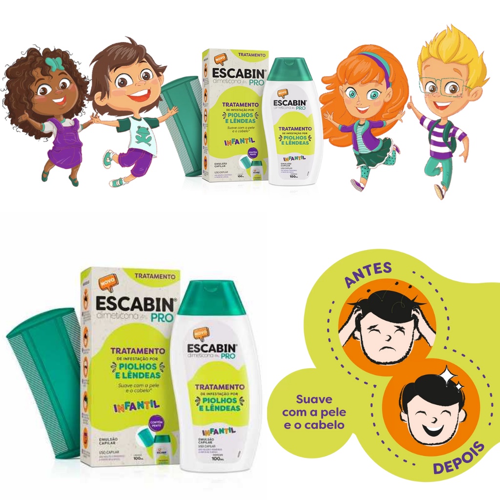 Escabin Pro Piolhos E Lêndeas Com 100 ml + Pente Fino Tratamento Eficaz Suave Com A Pele E Cabelo