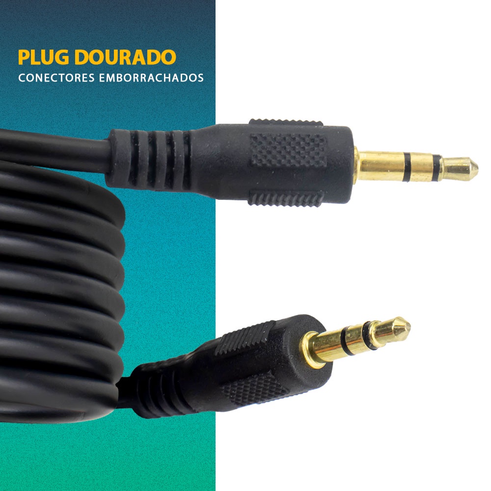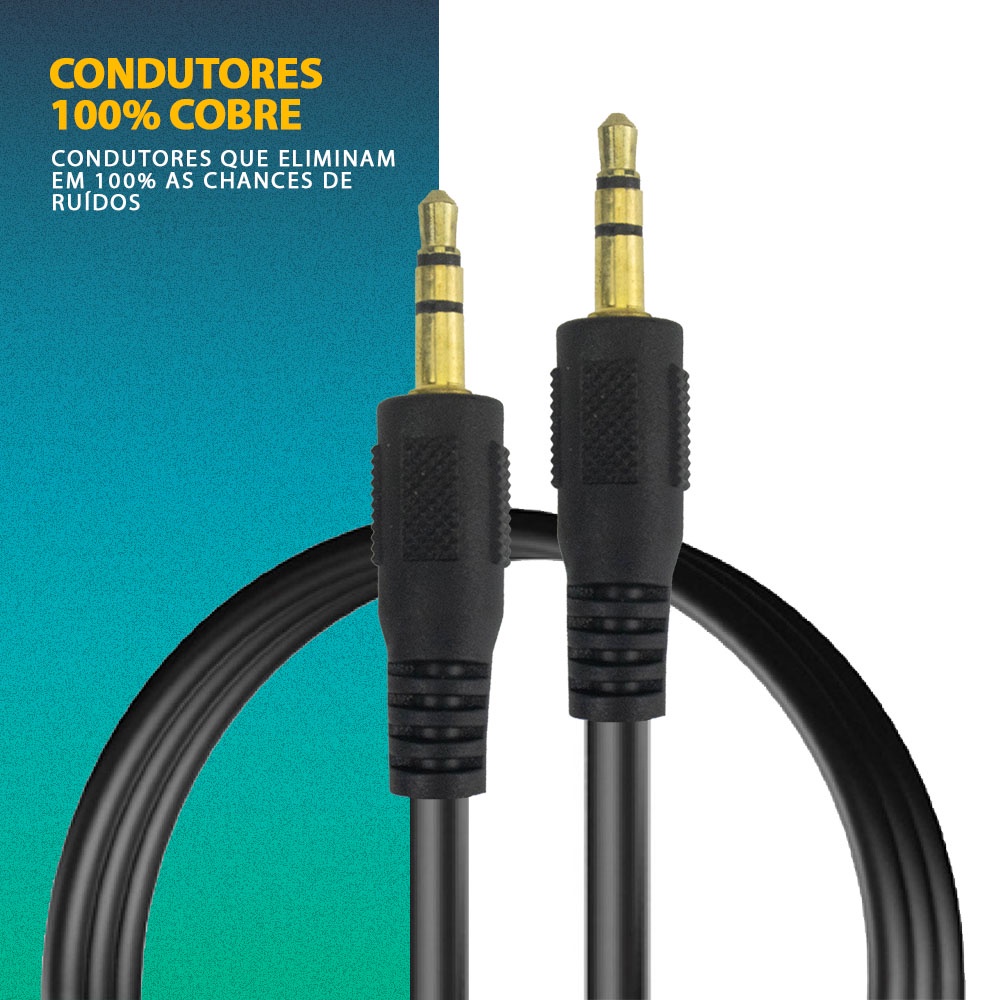 Cabo de Áudio Analógico Auxiliar 3.5 P2 Macho P2xP2 de 1,50 Metros Alta Qualidade Celular Caixa Som