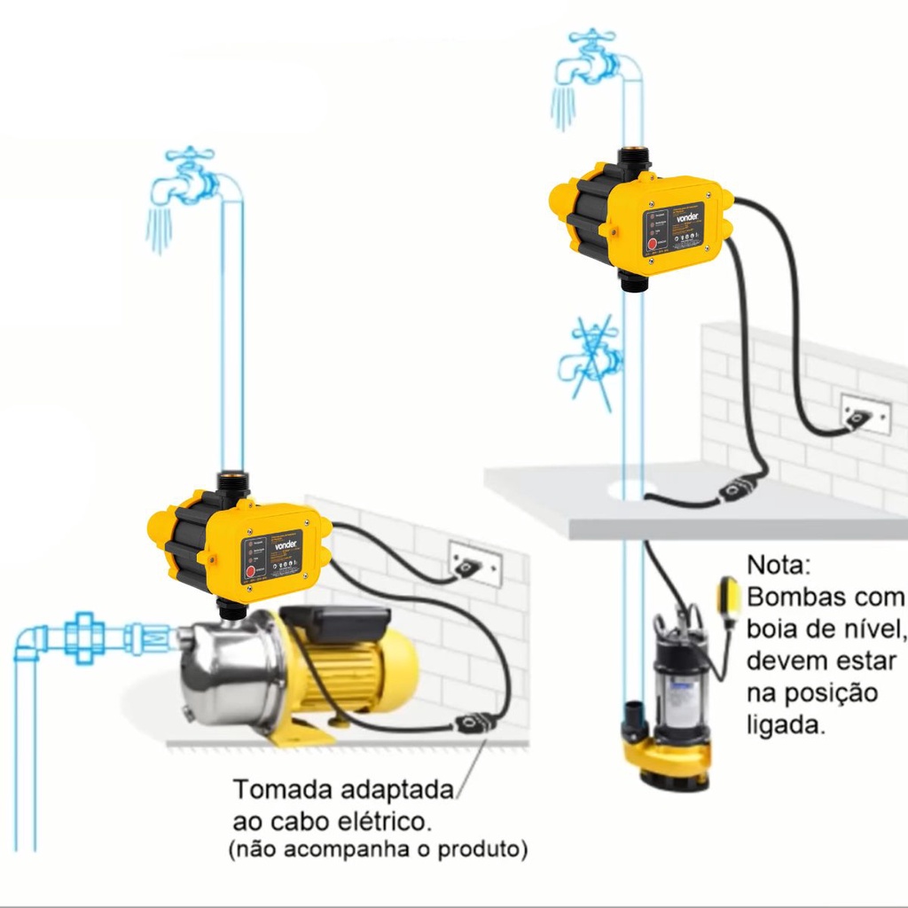 Bomba Pressurizadora De 1/2hp Bivolt Com Pressostato Vonder Automatização Casas Chacaras Sitio Cisternas Caixas Agua