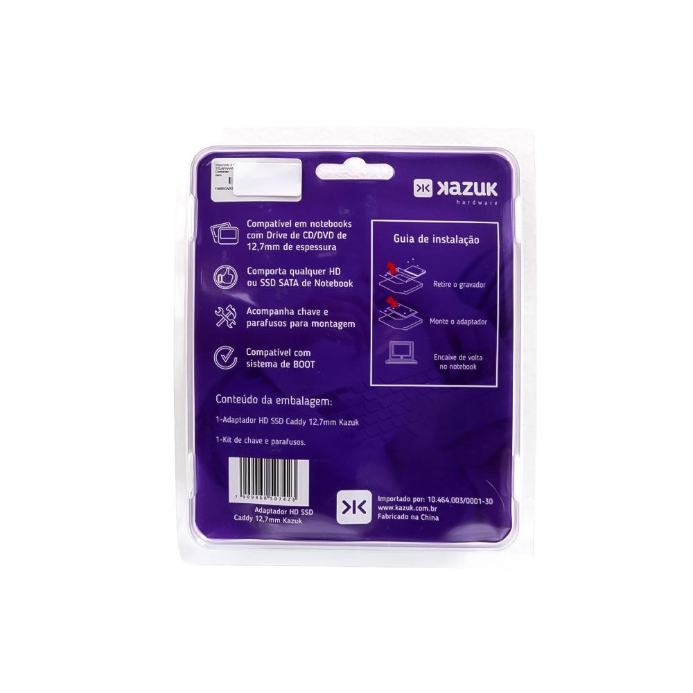 Adaptador Caddy Segundo Hd Ssd Sata P/ Notebook Drive 12,7mm