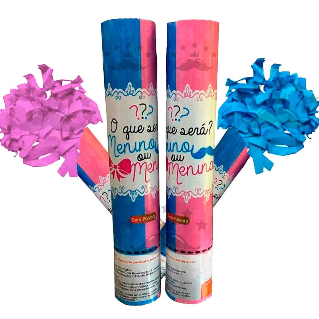 Lança Confete para Chá de revelação Azul ou Rosa Menino ou Menina