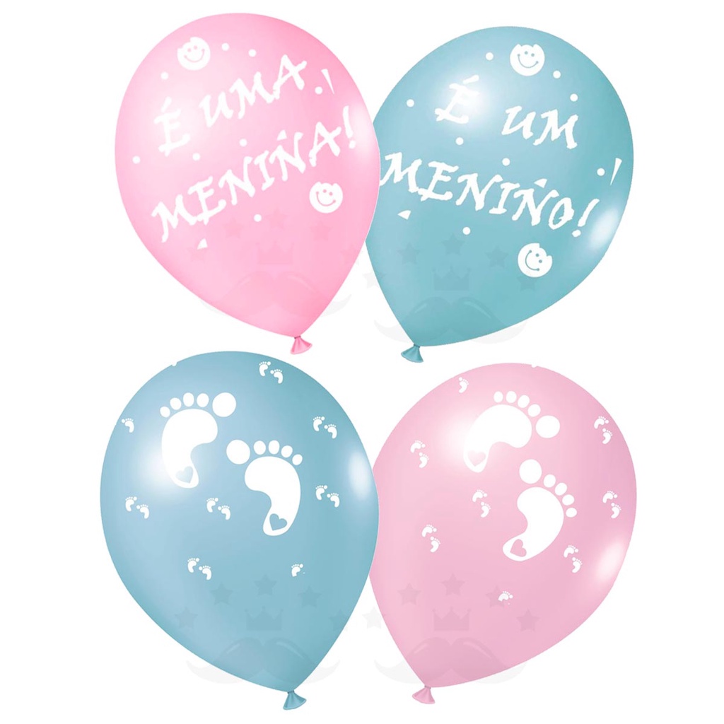 Balões Bexigas para Chá Revelação 20/50 unidades Azul e Rosa Menino ou Menina/Pezinho - 9 polegadas
